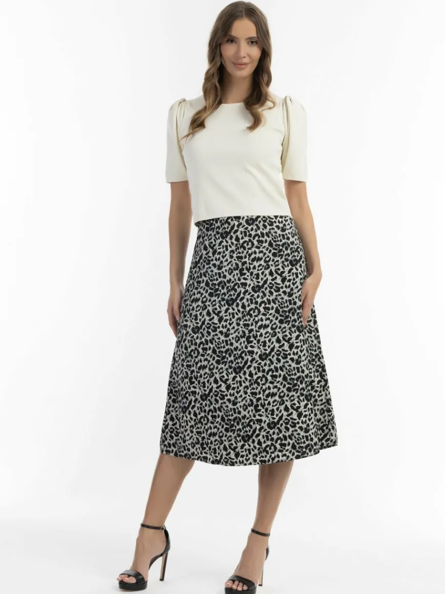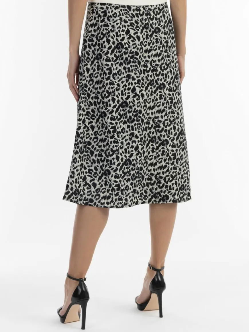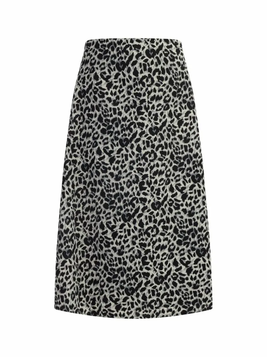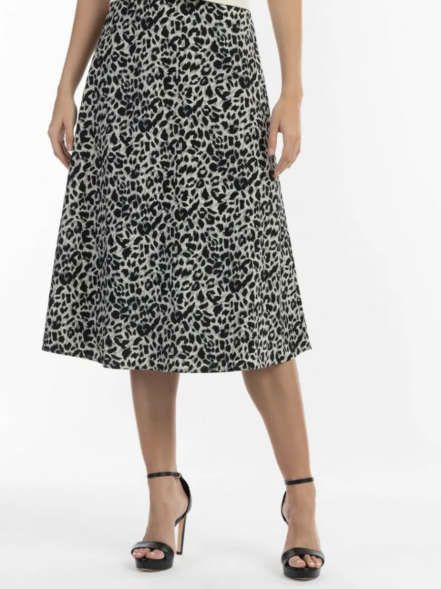 Faina Röcke*Damen Midirock mit Leo-Print grau gemustert