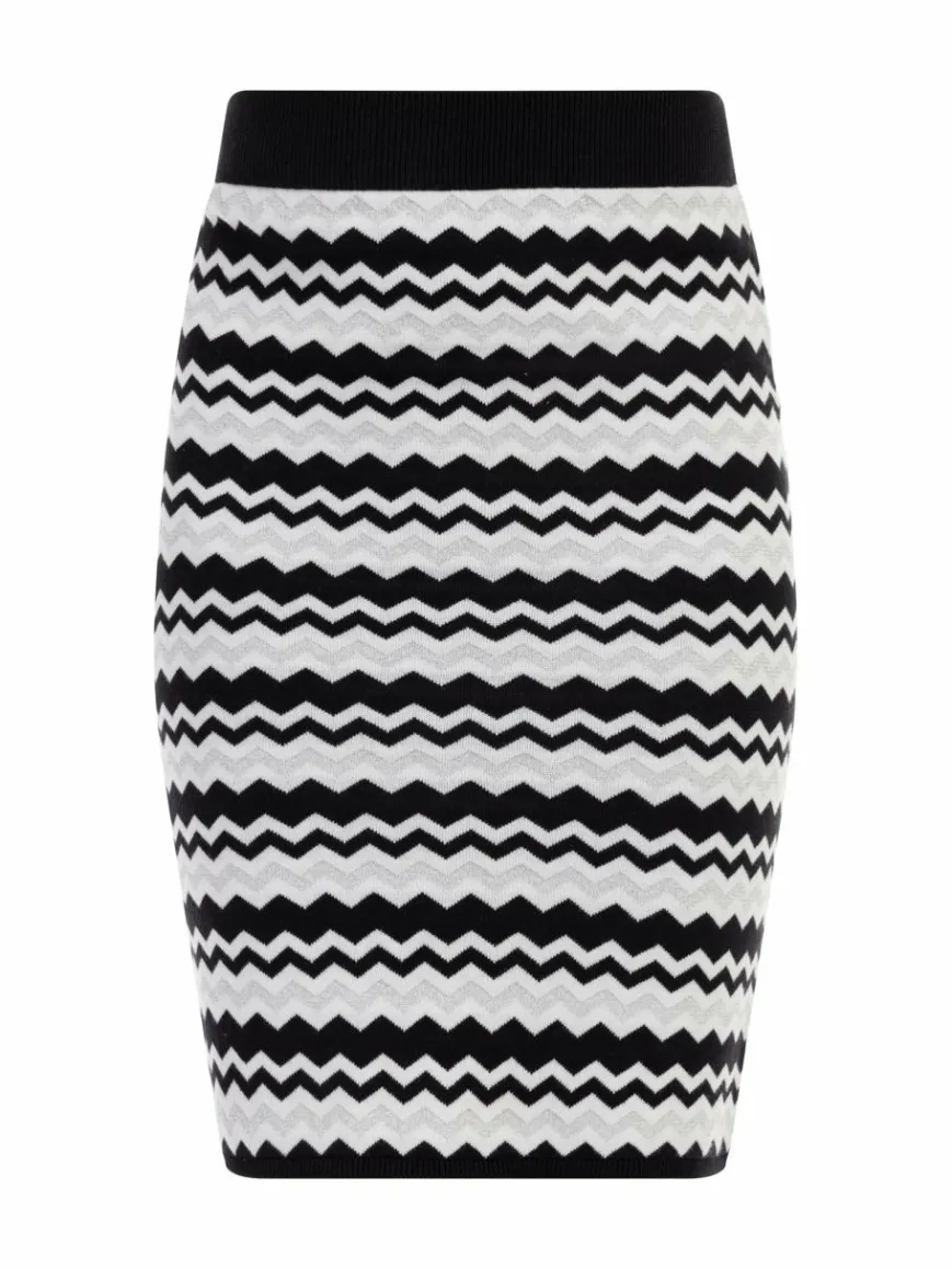 Auf Zack! Die glamourösen Essentials von faina bringen Schwung in Ihre Garderobe. Das weiche Garn mit hohem Baumwollanteil ist in einem ikonischen Zickzackmuster gestrickt und sorgt mit seinen schimmernden Metallic-Garn-Abschnitten für auffälligen Glanz. Als figurbetonter Bleistiftrock zeigt er eine enge Silhouette, die schmeichelhaft hoch auf der Taille sitzt. Für einen abgestimmten Look tragen wir dazu das passende Top der Brand.