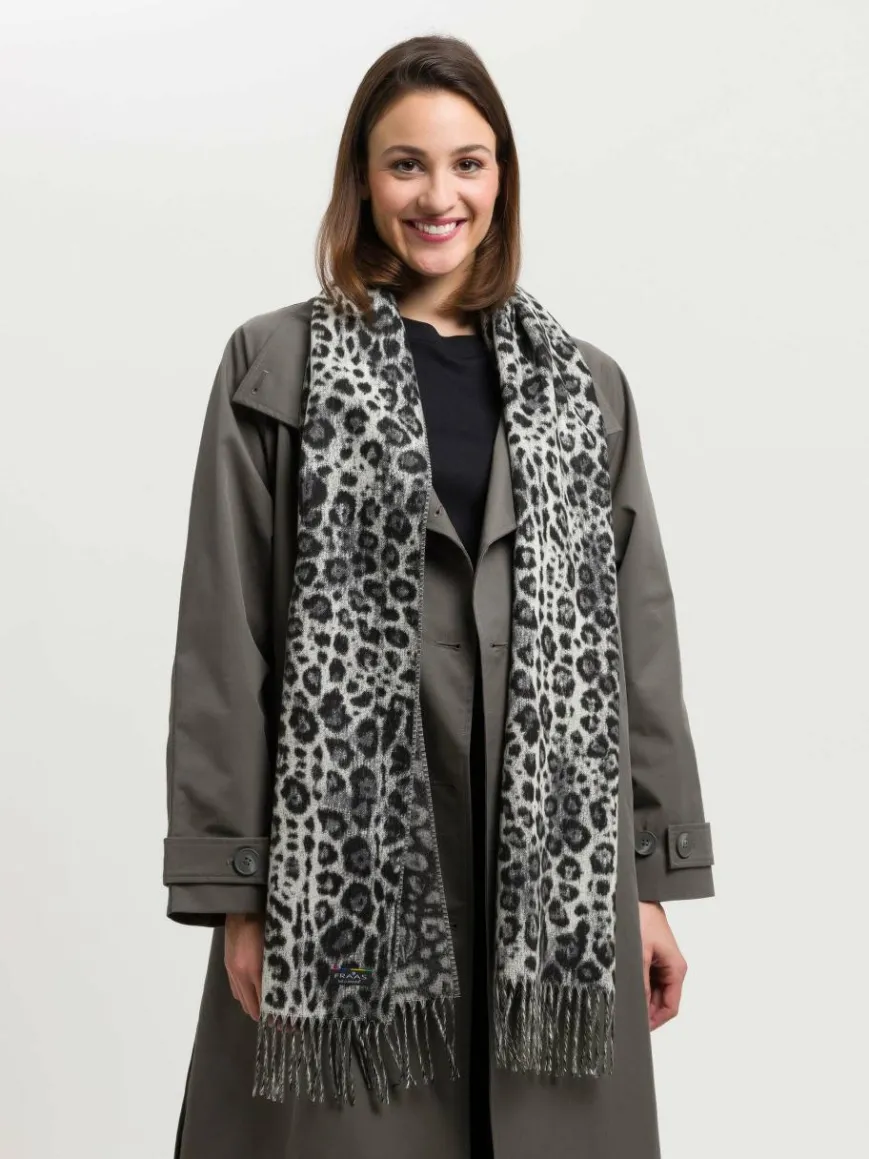 Schicker Allrounder für den Winter: Der FRAAS Cashmink-Schal ist mit seinem Leoparden-Design und den langen Fransen ein richtiger Hingucker. Der classy Look des Schals ist mit jedem modischen Outfit – von Business-Look bis Damenmantel – sehr gut kombinierbar. Ein elegantes Accessoire. Der 35 x 200 cm große Webschal ist aus bestem Cashmink von FRAAS gefertigt: sanft zur Haut, wärmend und weich.
