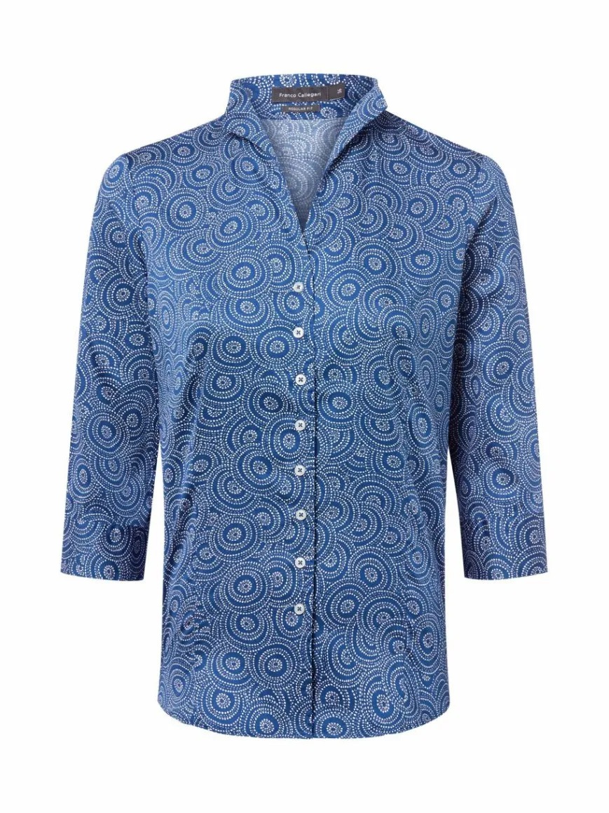 Franco Callegari Blusen*Damen Bluse indigo weiß gemustert