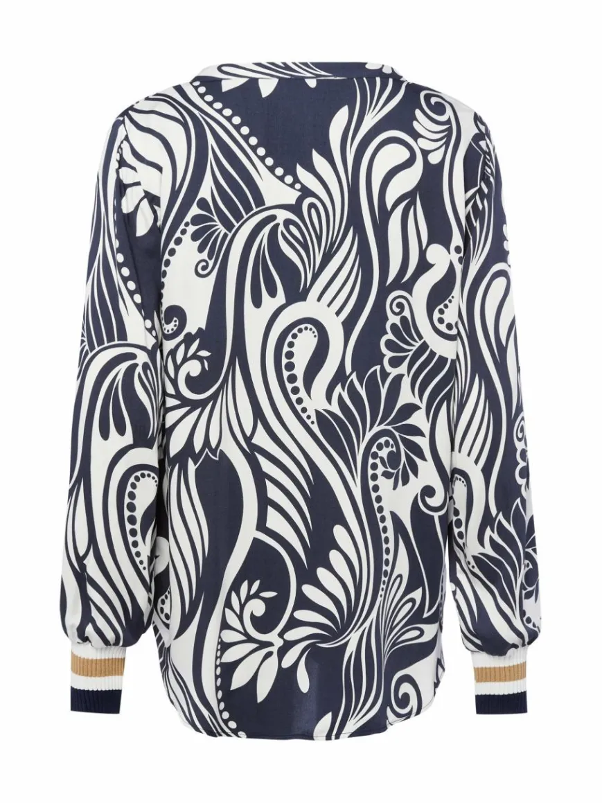 Breite Rippbündchen im Streifen-Look sorgen bei dem Franco Callegari Blusenshirt aus fließender Viskose für einen charmanten Stilbruch.