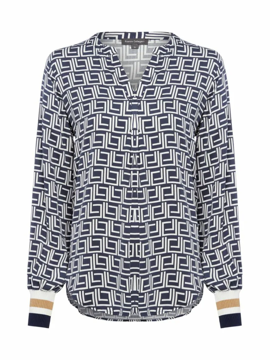 Breite Rippbündchen im Streifen-Look sorgen bei dem Franco Callegari Blusenshirt aus fließender Viskose für einen charmanten Stilbruch.
