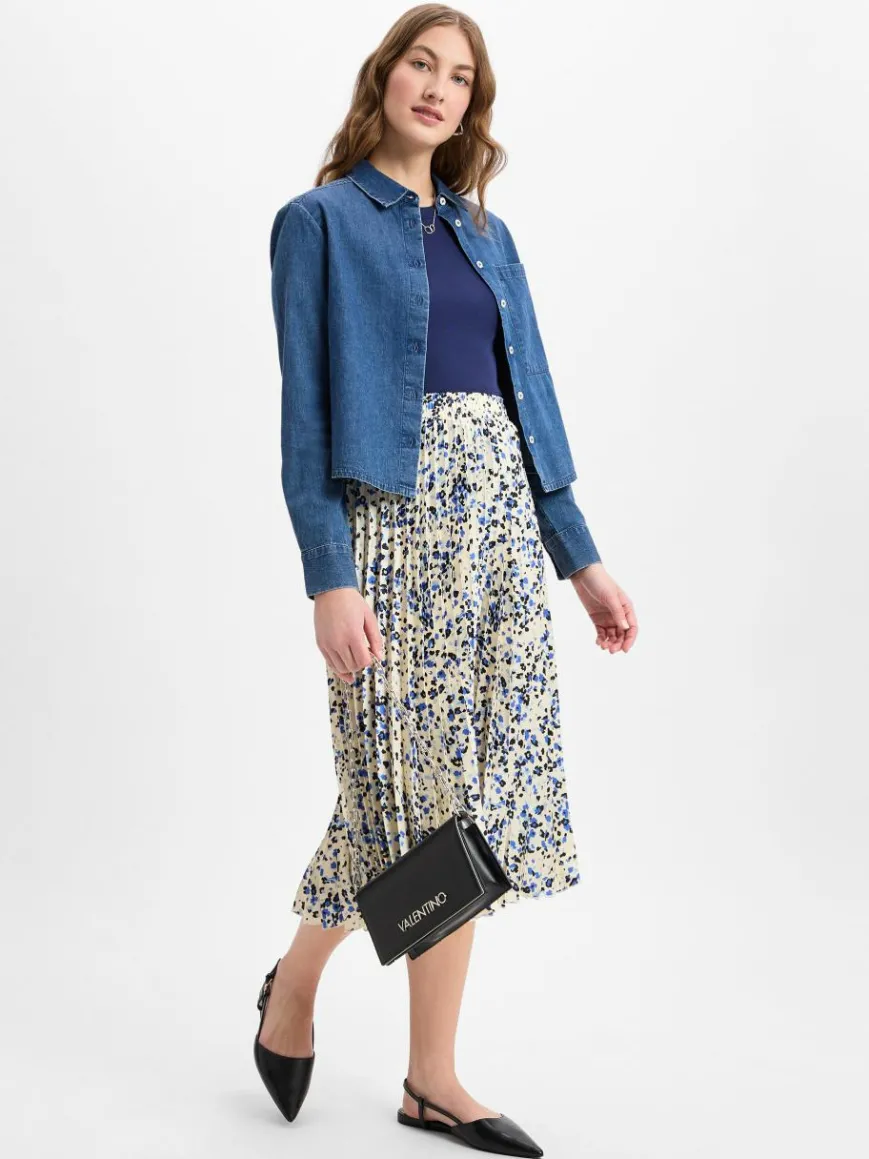 Der Franco Callegari Faltenrock in gemusterter Midilänge kombiniert klassischen Stil mit modernen Akzenten – ideal für elegante und dennoch lässige Looks, die sowohl im Büro als auch in der Freizeit begeistern.