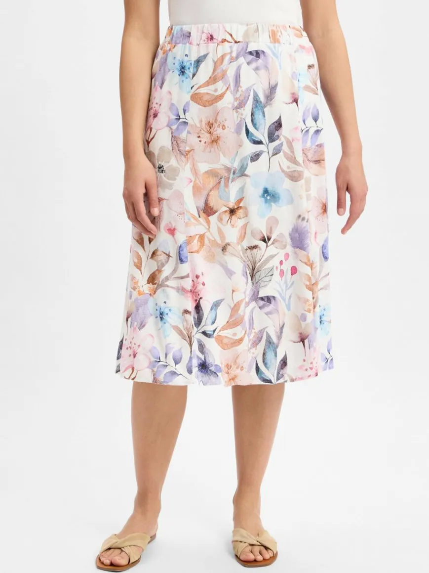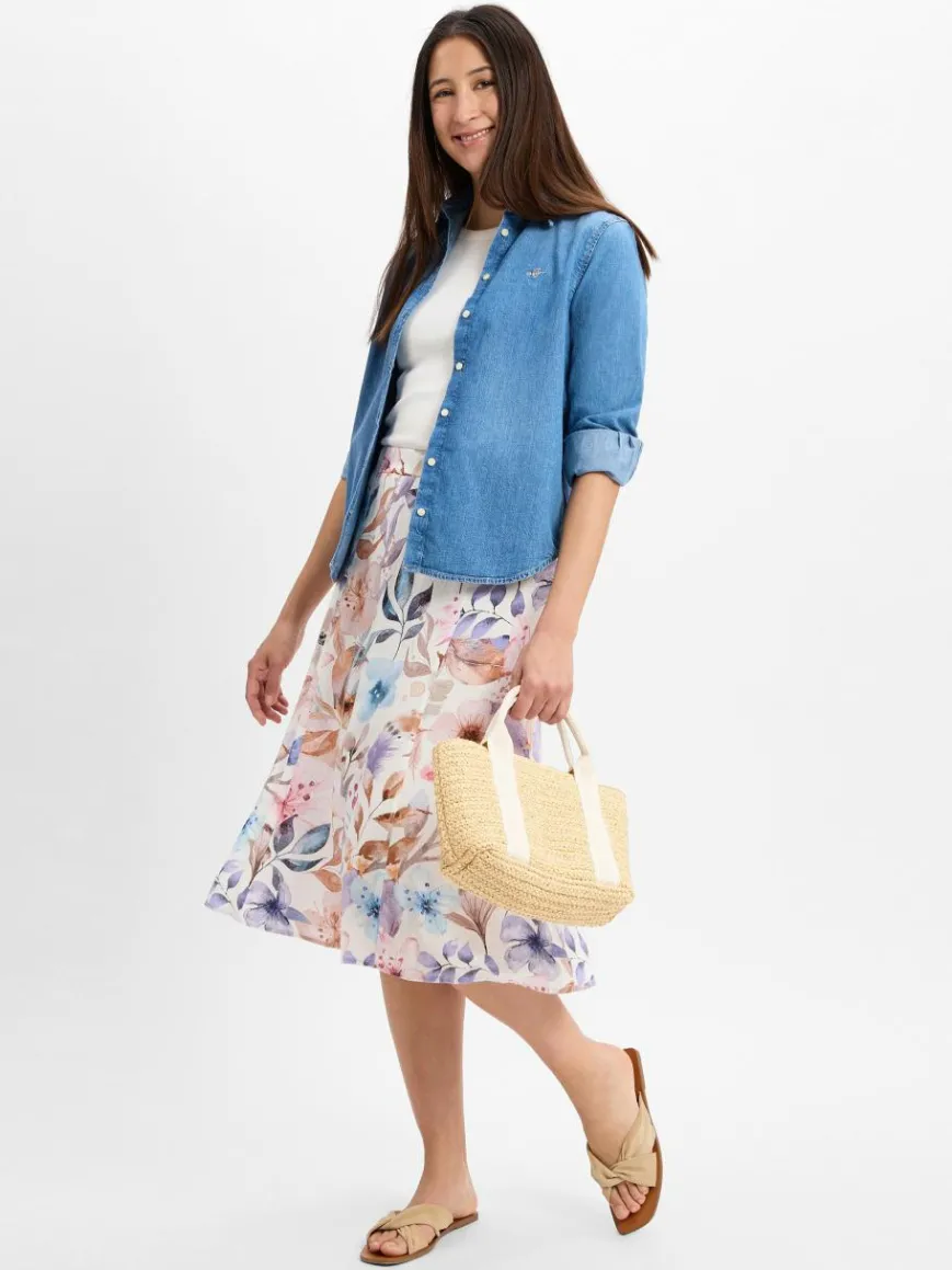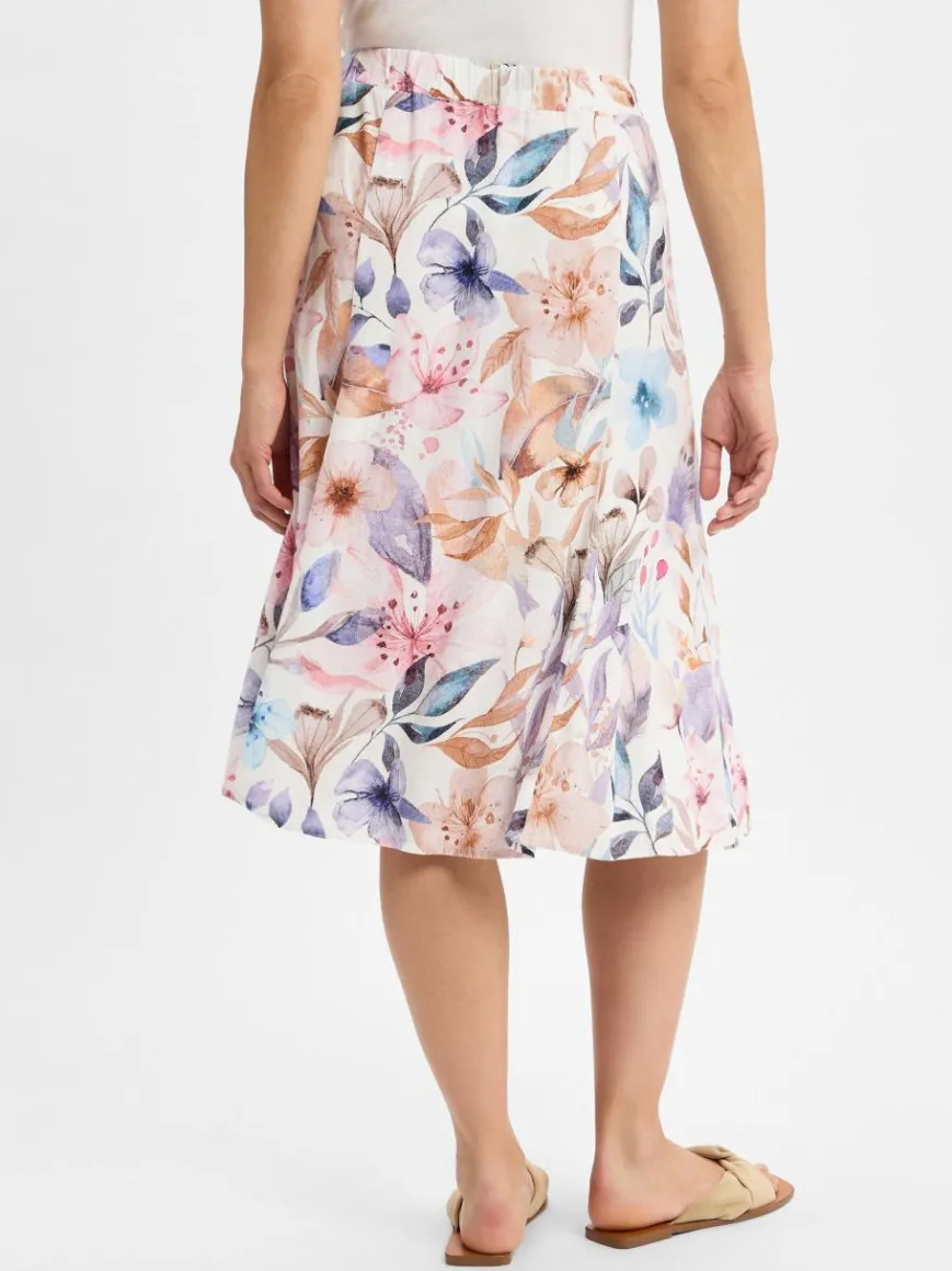 Der A-Linien-Midirock von Franco Callegari, gefertigt aus einem komfortablen Leinen-Viskose-Mix, strahlt eine elegante Leichtigkeit aus und ist perfekt für schicke Sommerlooks geeignet.