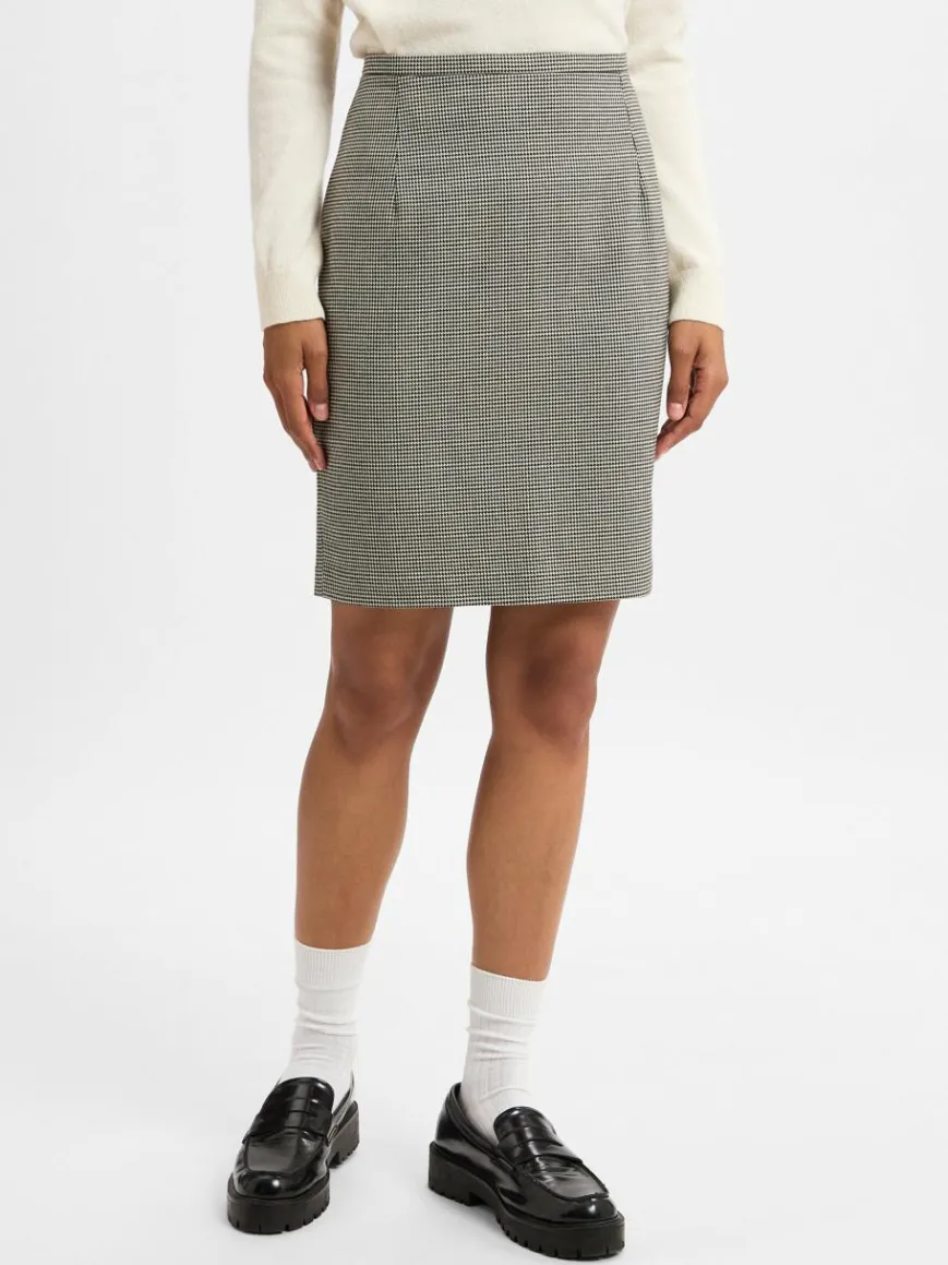 Sowohl für den modernen College-Look als auch für elegante Büro-Kombinationen eine schöne Basis: Franco Callegaris Rock im schlichten Karodesign.