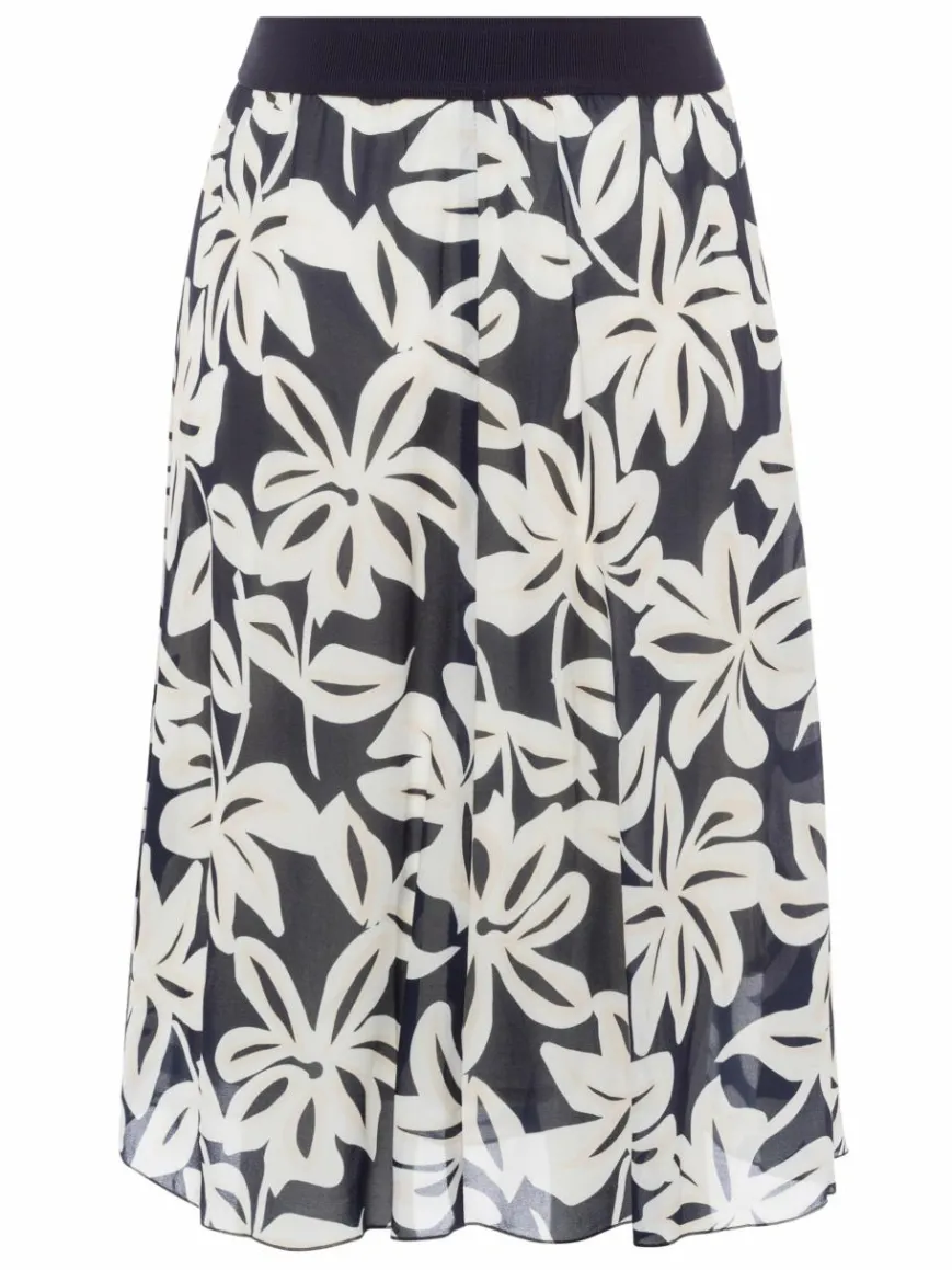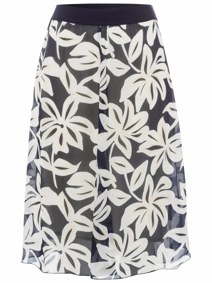 Druckrock in charmanter Länge. Die weich fließende Viskose-Qualität verleiht dem gefütterten Modell einen schönen Schwung. Mit flach anliegendem und komfortablem Schmuckgummi in der Taille.