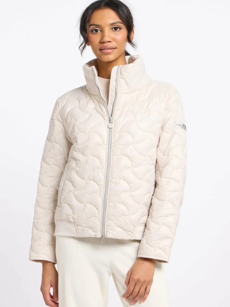 Modernes Volumen trifft funktionale Eleganz: Die Fake Down Jacket Juliet von Frieda & Freddies punktet mit einem hohen Stehkragen, der nicht nur schützt, sondern auch stilistisch überzeugt. Der Reißverschluss fügt sich harmonisch in das Design mit gemusterter Steppung ein, während zwei seitliche Taschen und ein dezentes Ärmel-Detail die Jacke komplettieren.