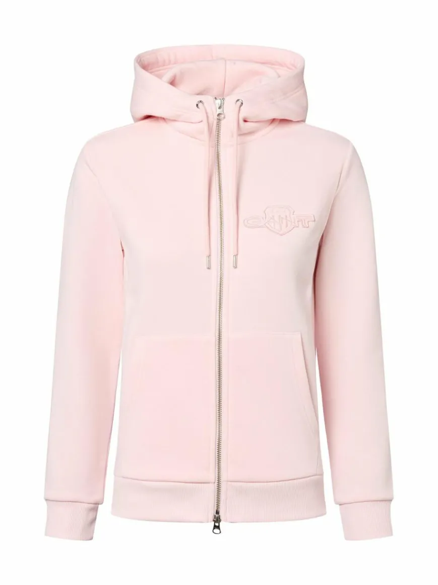 Die Sweatjacke begeistert mit Gant Logo-Patch, Two-Way-Zipper und inwendigem Soft Finish als comfy Freizeit-Basic.