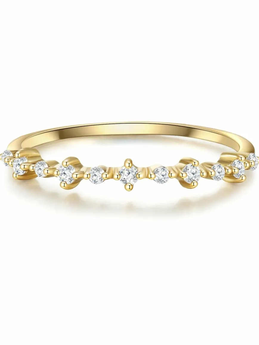 Wenn du einen Ring mit stilvollem Glam-Faktor suchst, ist dieser feminine Ring des Labels Glanzstücke München eine gute Wahl! Die filigrane Ringschiene trägt ein raffiniertes Ensemble aus Zirkonia-Kristallen in Krappenfassungen, die für einen optimalen Lichteinfall sorgen. Das Ergebnis ist ein zarter und doch auffälliger Hingucker an deiner Hand.