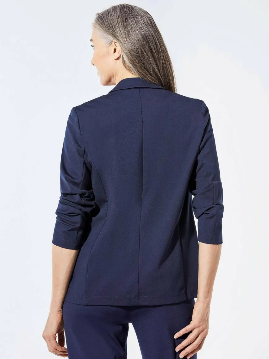 Goldner Blazer*Damen Leichtblazer – Damenblazer mit Reverskragen und Paspeltaschen marine uni