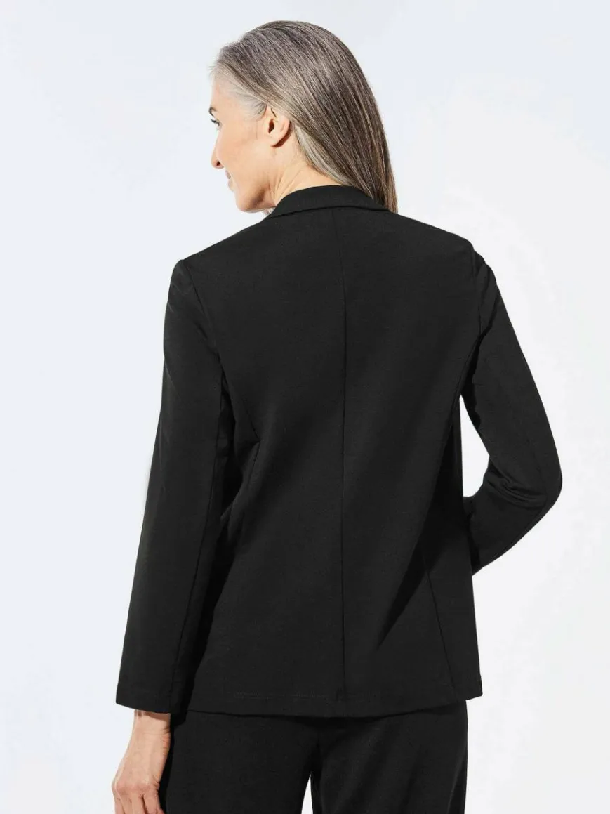 Goldner Blazer*Damen Leichtblazer – Damenblazer mit Reverskragen und Paspeltaschen schwarz uni