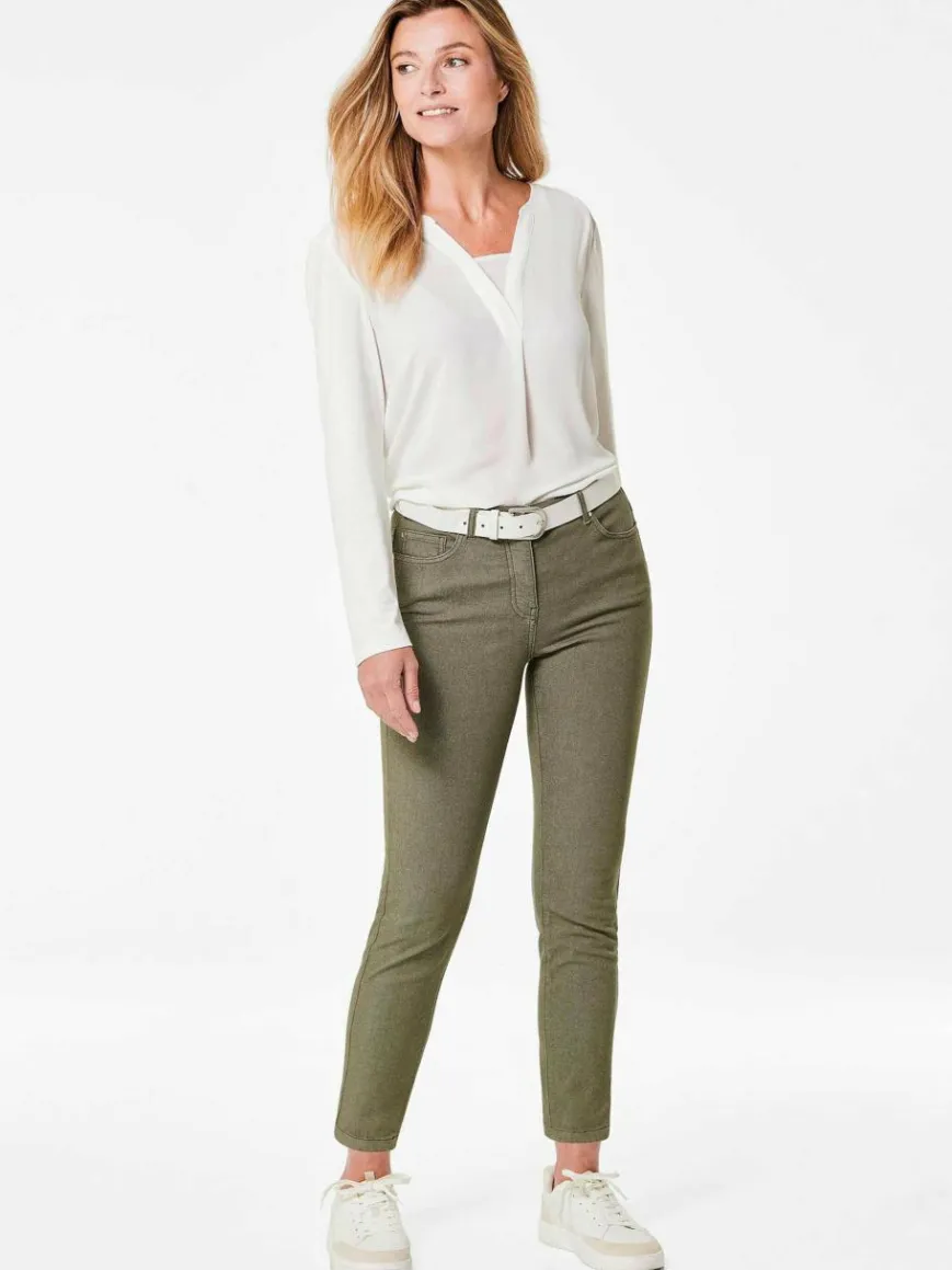 Goldner Jeans*Damen 7/8-Jeanshose – Schmale Stretchhose BELLA schilf uni