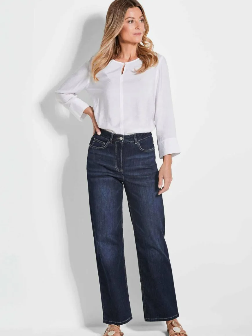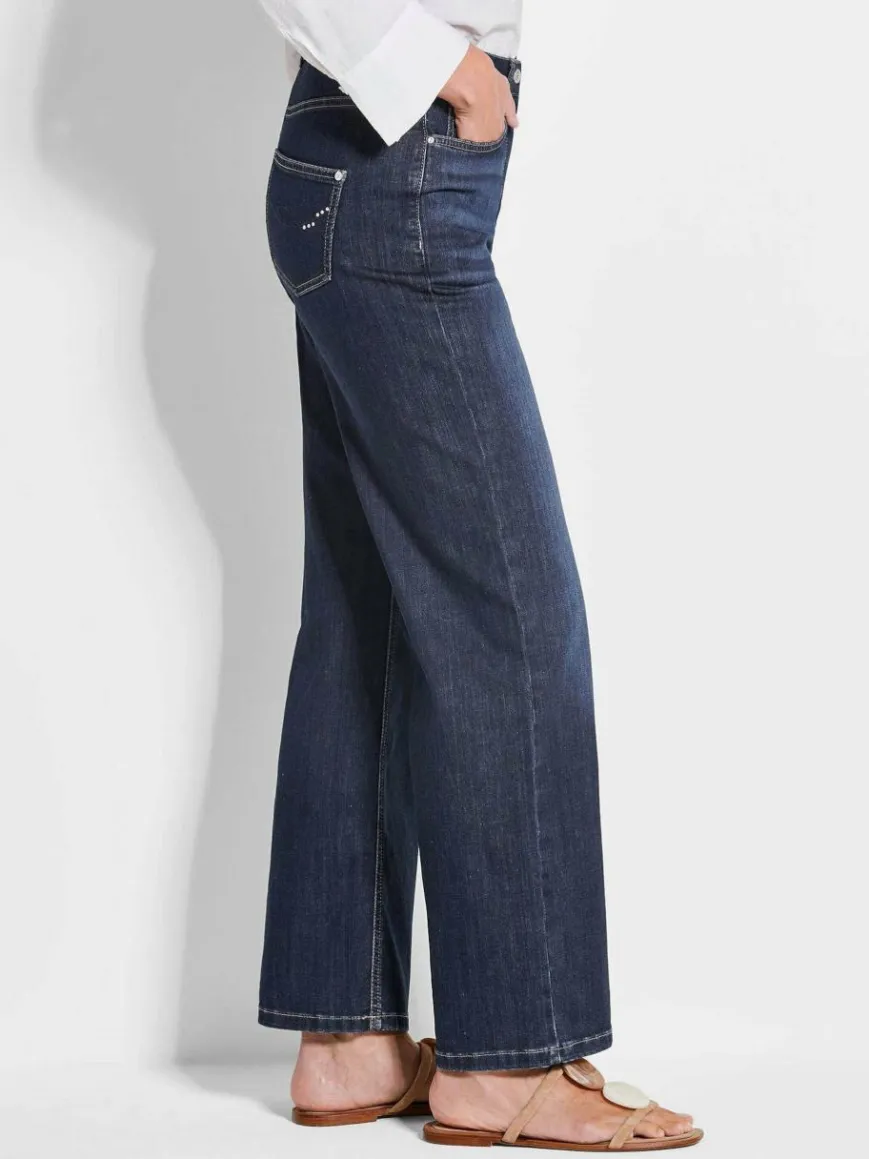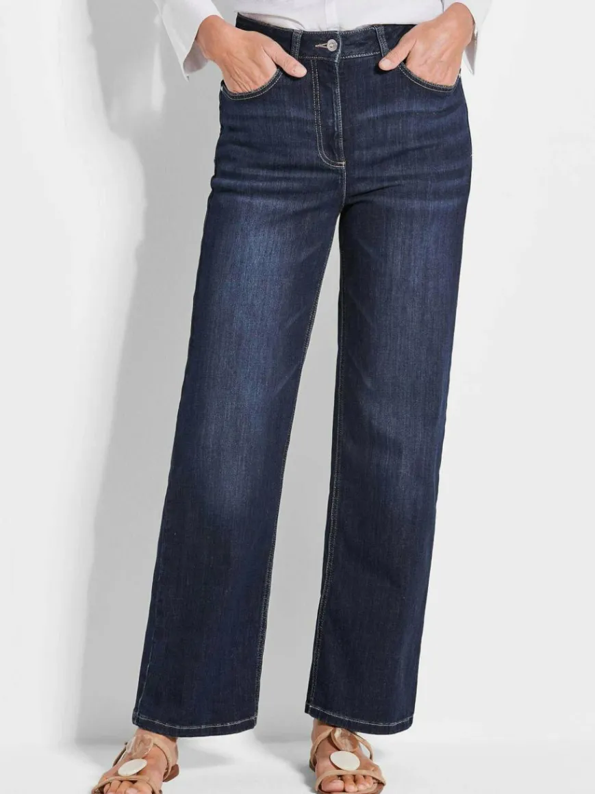 Goldner Jeans*Damen Jeans – Denim Jeans mit weitem Bein blau uni