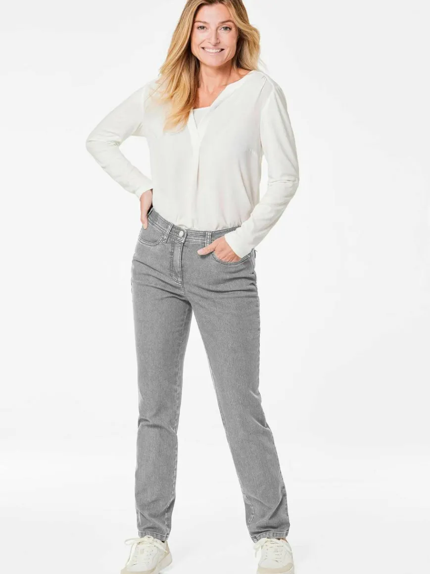 Goldner Jeans*Damen Jeanshose Carla – Klassische Jeanshose Carla hellgrau uni