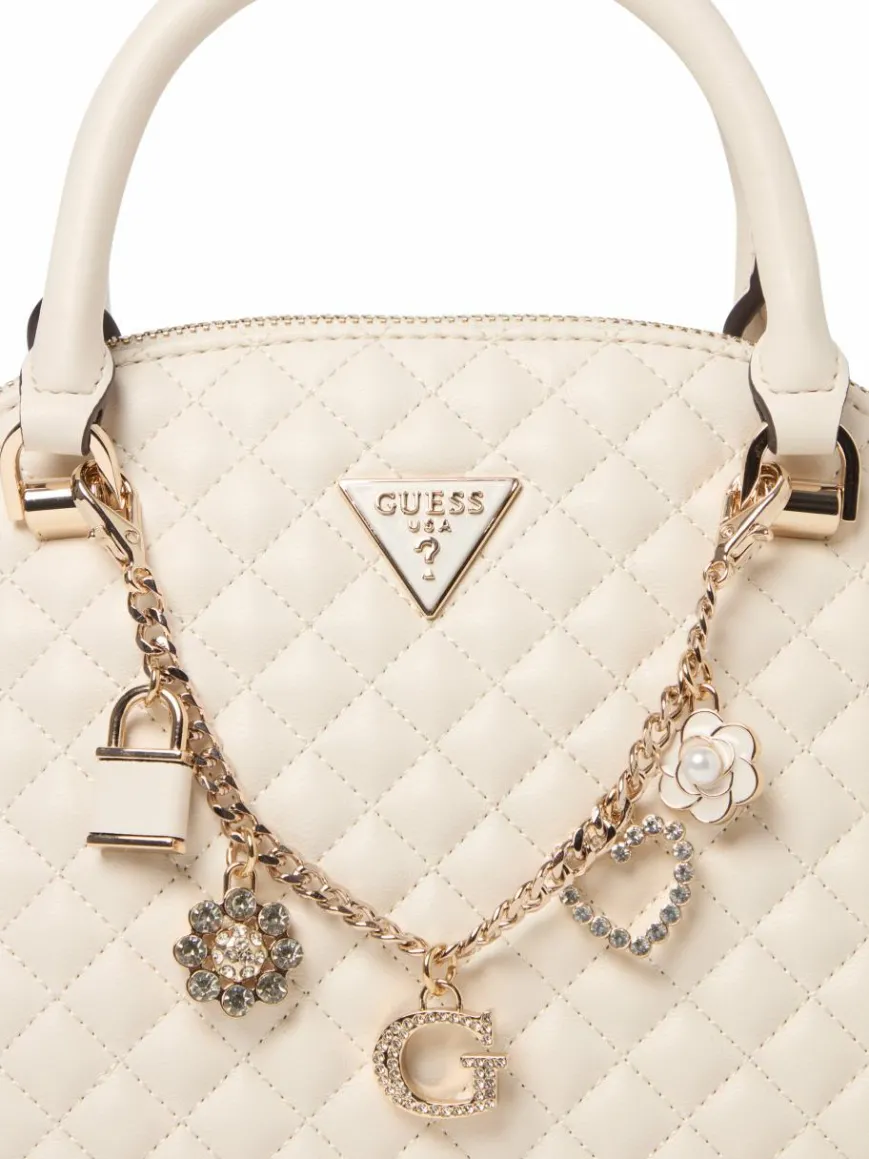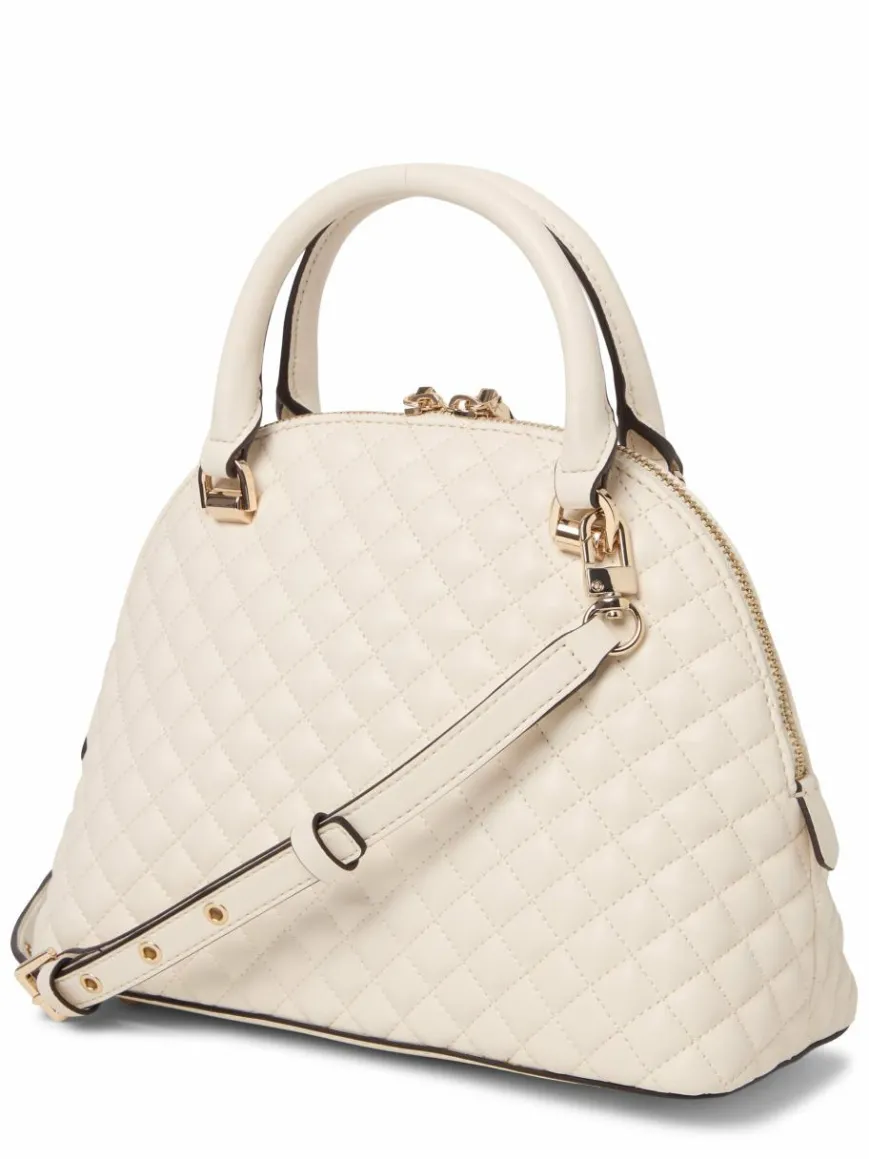 Die GUESS Handtasche Everlee aus Kunstleder ist in gestepptem Design und mit den dekorativen Logo-Details ein echtes Statement-Accessoire.