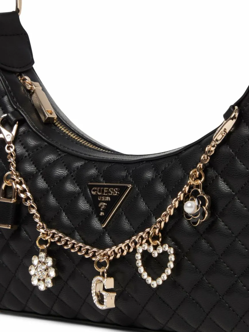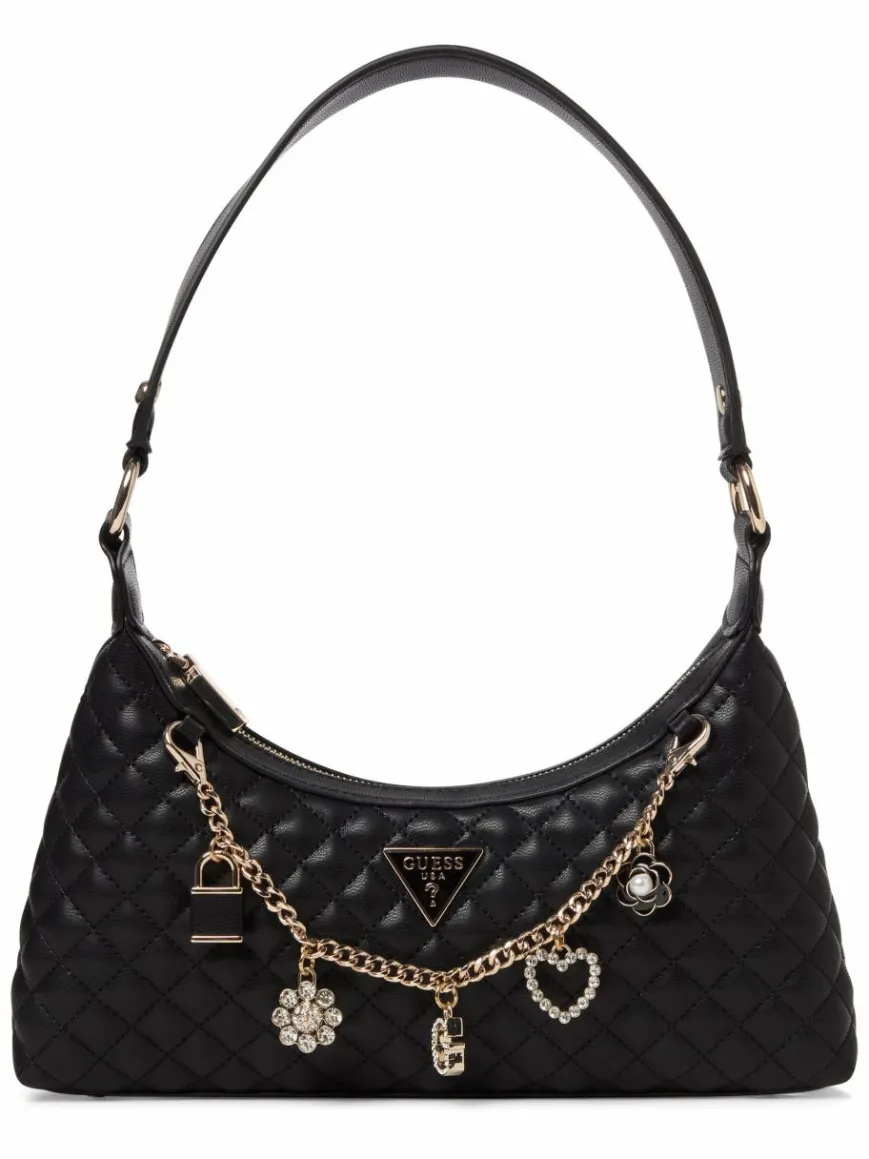 Die gesteppte Kunstleder-Qualität und die funkelnd verzierten Logo-Details zeichnen die GUESS Schultertasche Everlee als charmantes Accessoire mit verspieltem Glam-Faktor aus.