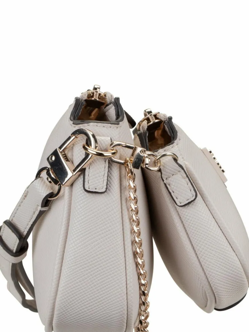 Die kleine Guess Umhängetasche aus pflegeleichtem Kunstleder in Saffiano-Optik begeistert durch ihr Material und ihre Wandelbarkeit. Die abnehmbare Tasche auf der Front lässt sich nämlich separat tragen.