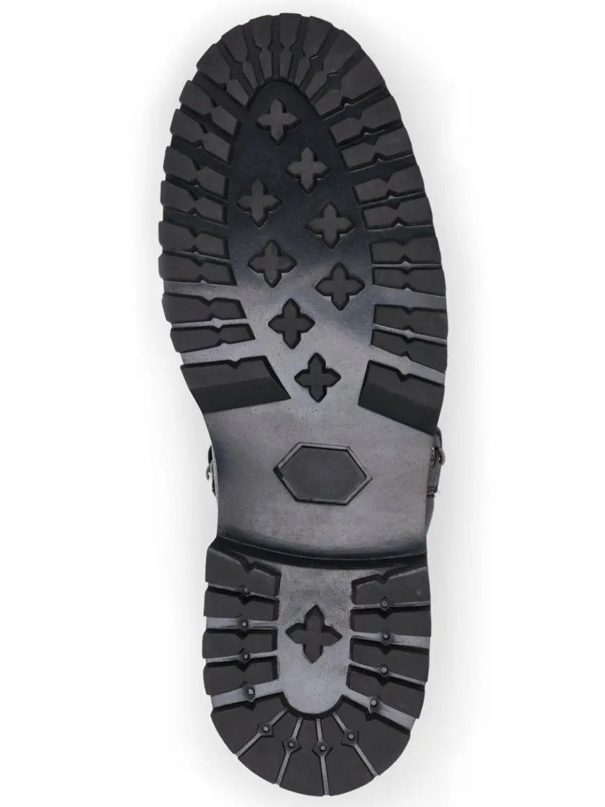 Der Bonnie Hiking Boot in Schwarz aus geprägtem Kalbsleder bietet ein Innenmaterial aus vegetabil gegerbtem Leder und eine Gummisohle. Handgefertigt und rahmengenäht verbindet er robuste Funktionalität mit sorgfältiger Verarbeitung. Hergestellt in Spanien.
