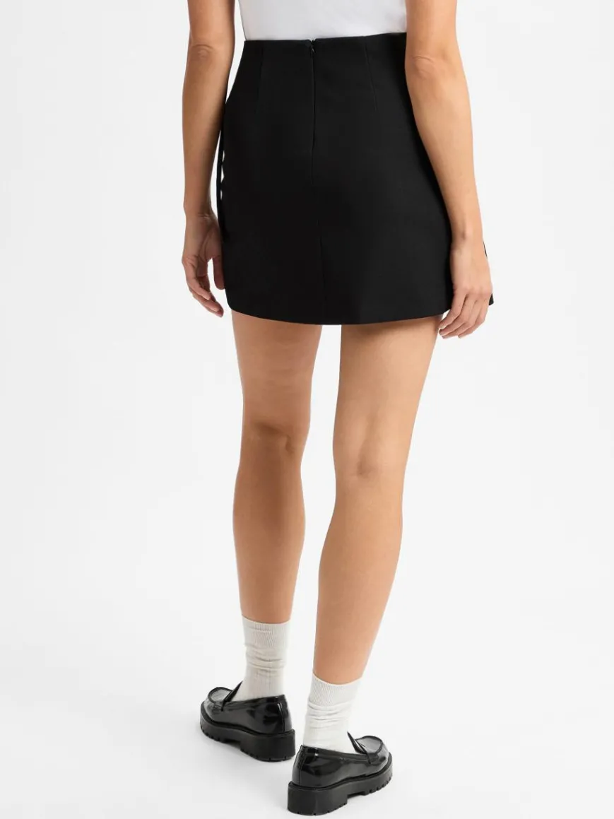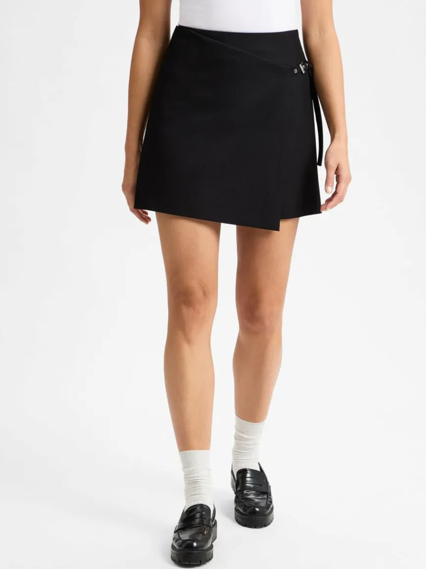 Der Minirock Ralu von HUGO ist mit einer vorgezogenen Schürze ausgestattet, die sich durch einen Gürtelverschluss verstellen lässt. So entsteht ein besonderer Look.