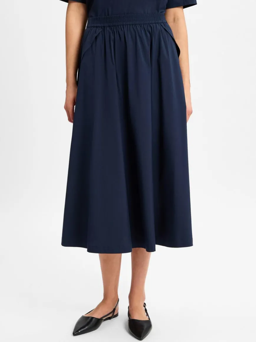 Der schlichte Midi-Rock Sanya von JOOP! ost Teil eines Sets, kann aber auch super mit einem einfachen T-Shirt, Bluse oder leichten Pullover kombiniert werden. Er ist ein guter Allrounder, da er sich zu wirklich allem kombinieren lässt.