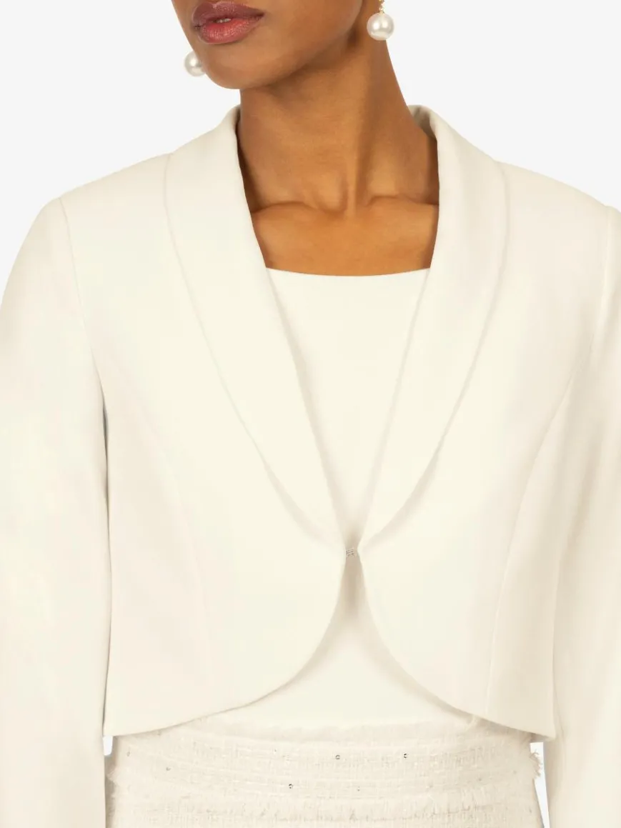 Dieser klassische Blazer mit langen Ärmeln und offenem Frontdesign verleiht jedem Outfit eine elegante Note. Der leicht strukturierte Stoff und der taillierte Schnitt sorgen für eine schlanke Silhouette, während das minimalistische Design vielseitig kombinierbar ist. Ideal für formelle Anlässe oder als schicke Ergänzung zu einem Kleid.