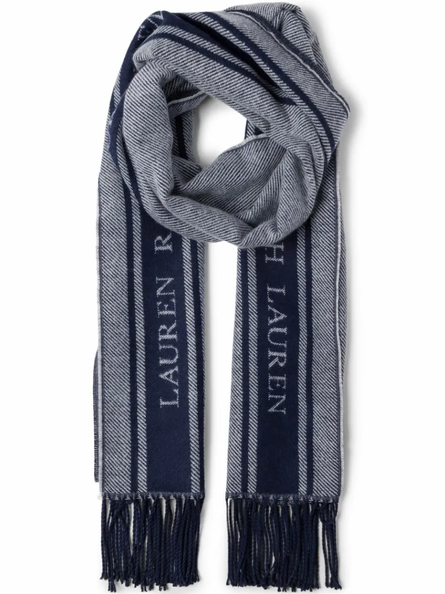 Der breite Lauren Webschal zeichnet sich durch einen eleganten Logo-Schriftzug aus, der ihm einen modernen und stilvollen Akzent verleiht.