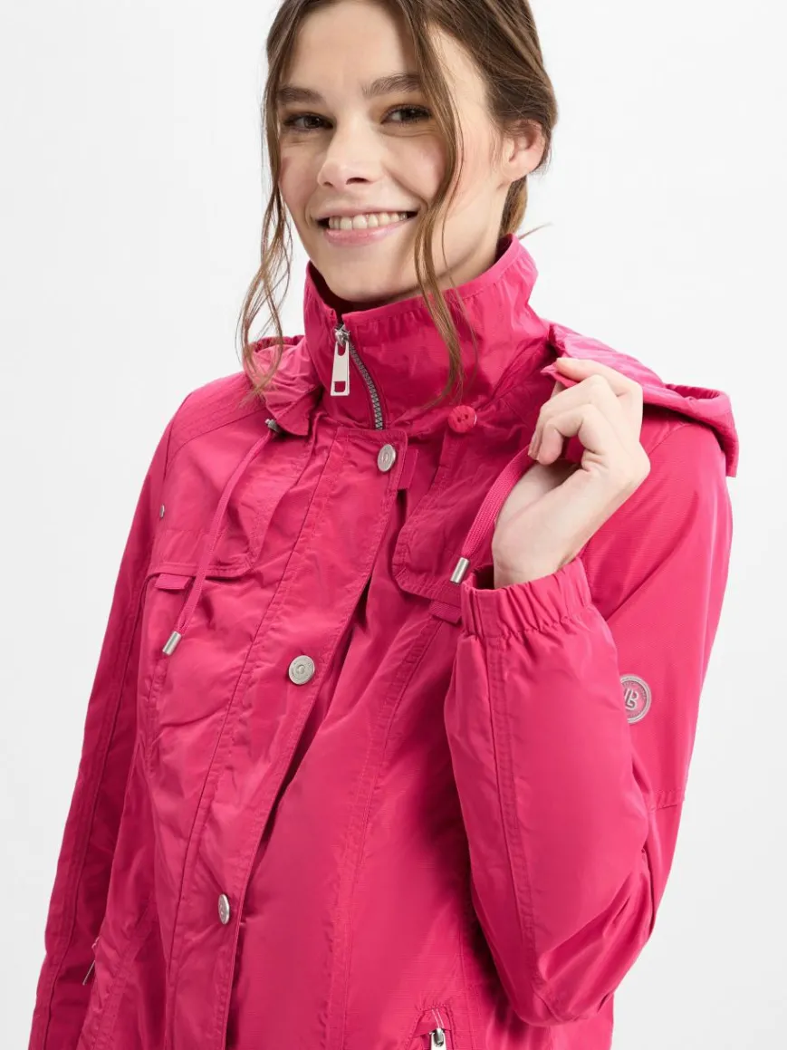 Die Übergangsjacke von Barbara Lebek aus hochwertiger Kunstfaser vereint Funktion und Stil – mit abnehmbarer Kapuze, Zip-Außentaschen und modischem Design ein echter Fashion-Hingucker.