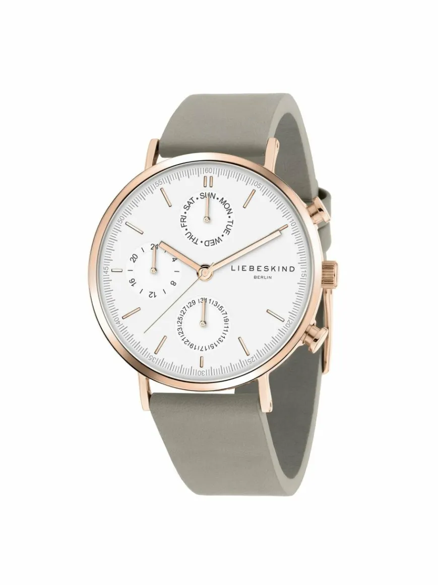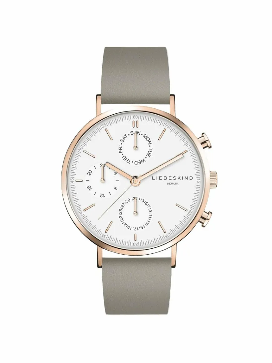 Mulitfunktions Damenuhr der Marke LIEBESKIND BERLIN mit Edelstahlgehäuse und hochwertigem Lederarmband.