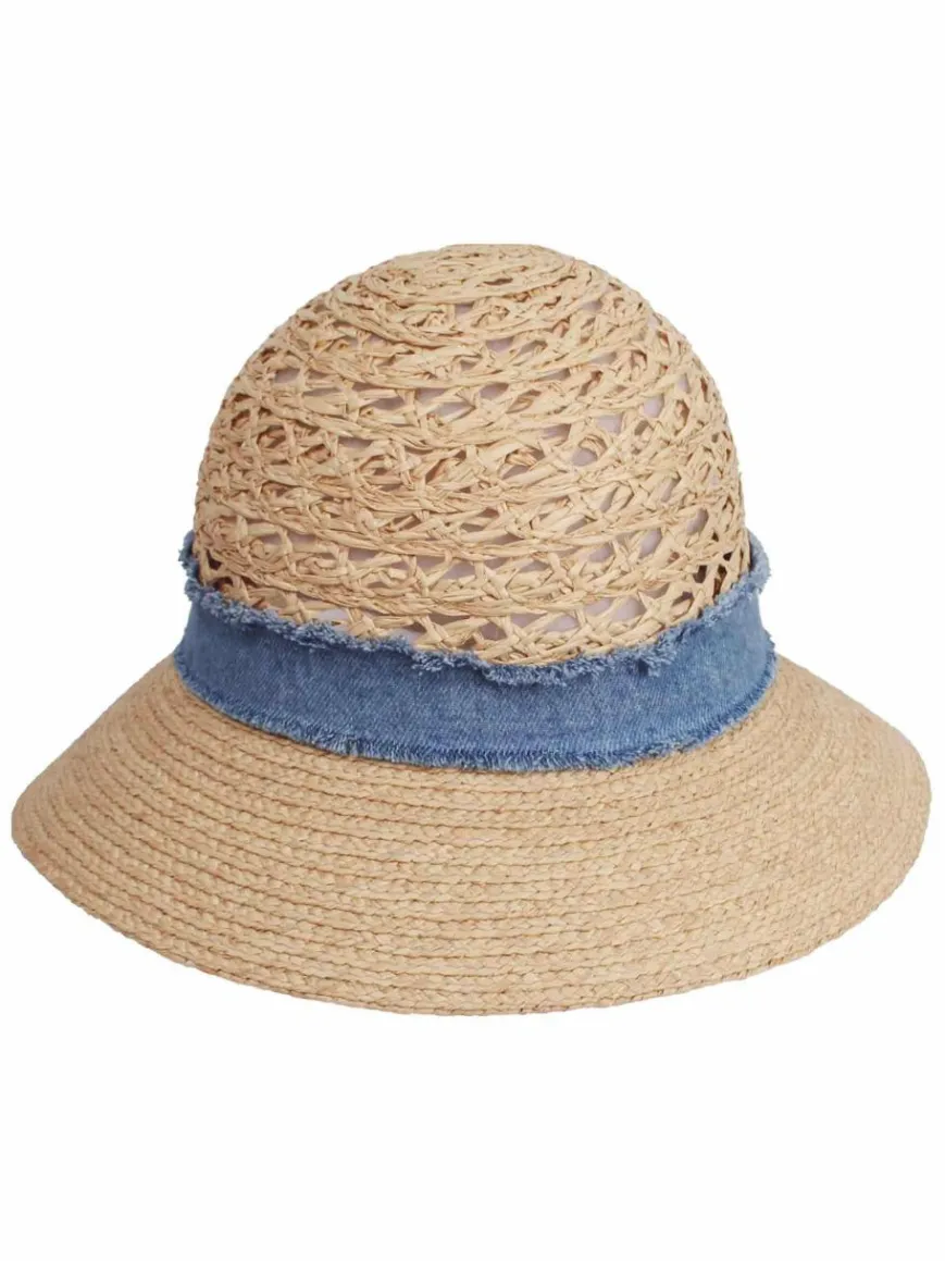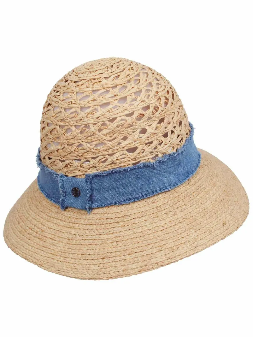 - Loevenich Strohhut mit gehäkelter Krone und Denim Hutband
