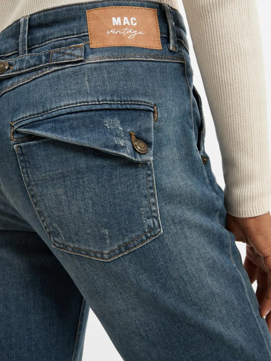 Die Montana Denim von MAC besticht mitUsed-Look-Effekten und einem elastischem Baumwoll-Mix – rundet jede Garderobe stilvoll-lässig ab.