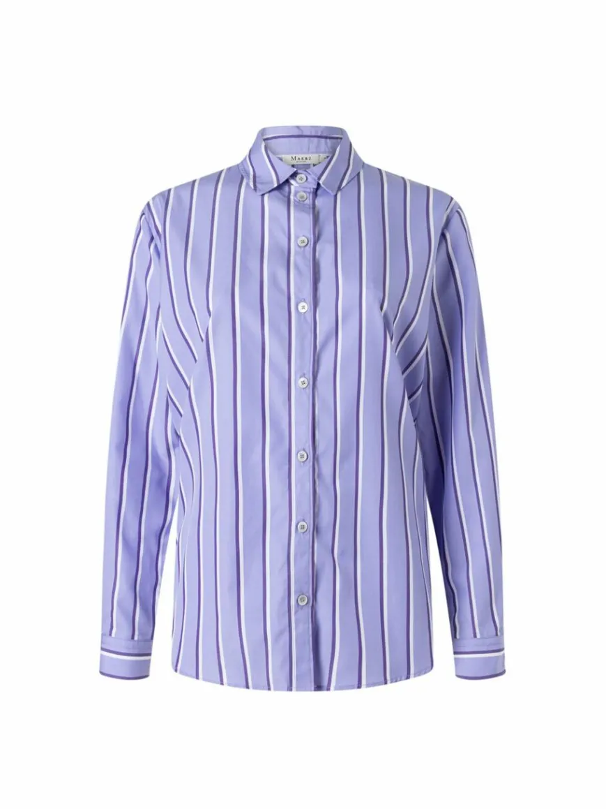 Modernes Stylingspiece mit klassischen Features: die Hemdbluse von MAERZ Muenchen mit verstärkten Manschettenärmeln und raffinierter Kellerfalte auf der Rückseite.