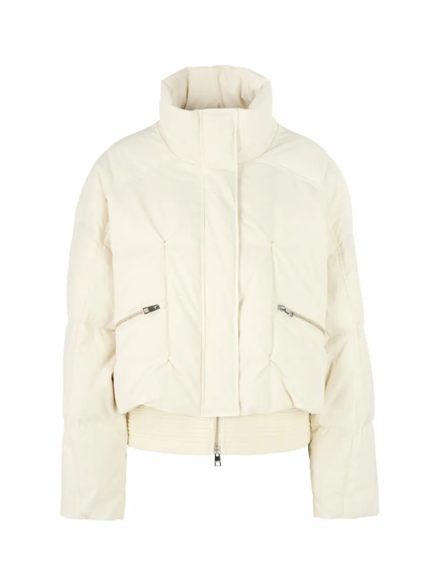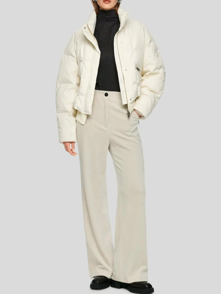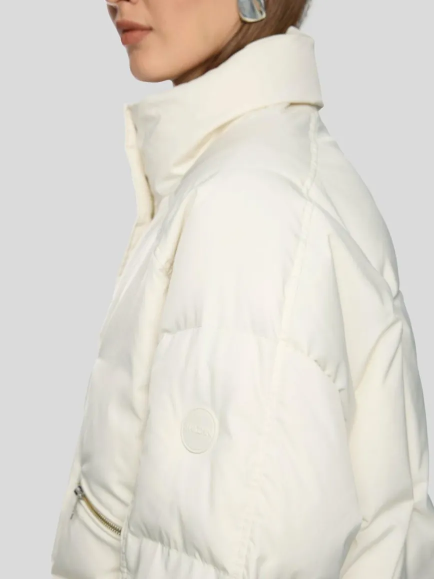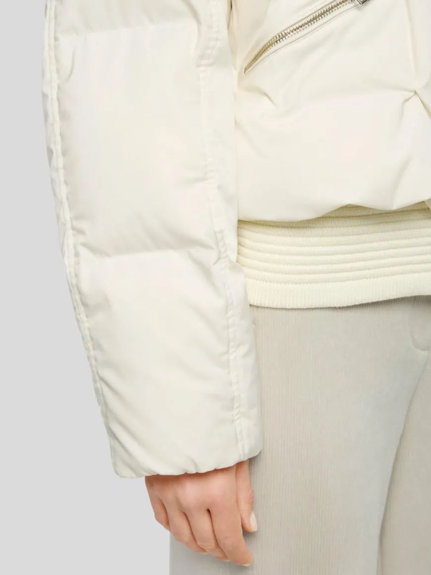Gesteppte Outdoor-Jacke mit warmer Daunenfüllung – ideal für kalte Tage. Verschließbar mit Druckknöpfen und Zwei-Wege-Zipper. Reißverschlusstaschen bieten sicheren Stauraum. Der angesetzte Strickbund aus Viskosemix sorgt für perfekten Sitz und einen modernen Look.