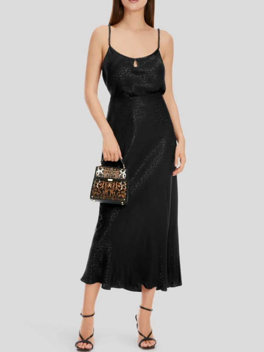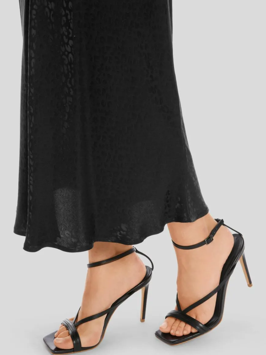 Mit seinem dezenten Ton-in-Ton-Leo-Jacquard zelebriert dieser lange Rock feminine Eleganz. Er besitzt eine figurnahe Silhouette mit verspielt ausgestelltem Saum. Die weich fließende Viskose besticht mit Tragekomfort. Passend dazu kommt der Rock mit elastischem Bund.
