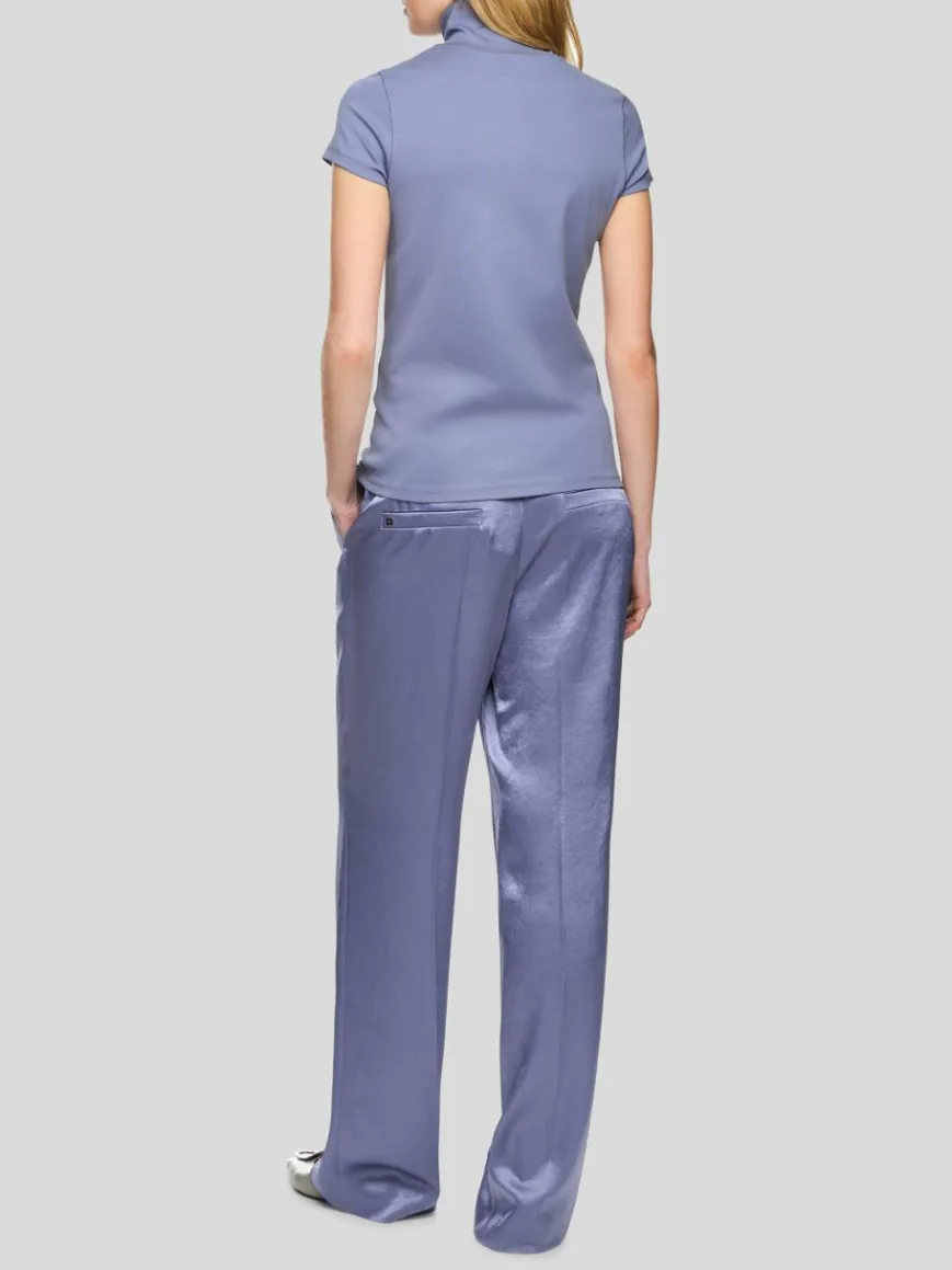 Elegant zeigt sich dieses T-Shirt mit hohem und geschlitztem Mock-Neck. Der Bodycon-Schnitt wird durch viertellange Ärmel ergänzt. Dank der feinen Baumwolle mit kleinem Elasthananteil sitzt das Oberteil sehr bequem.