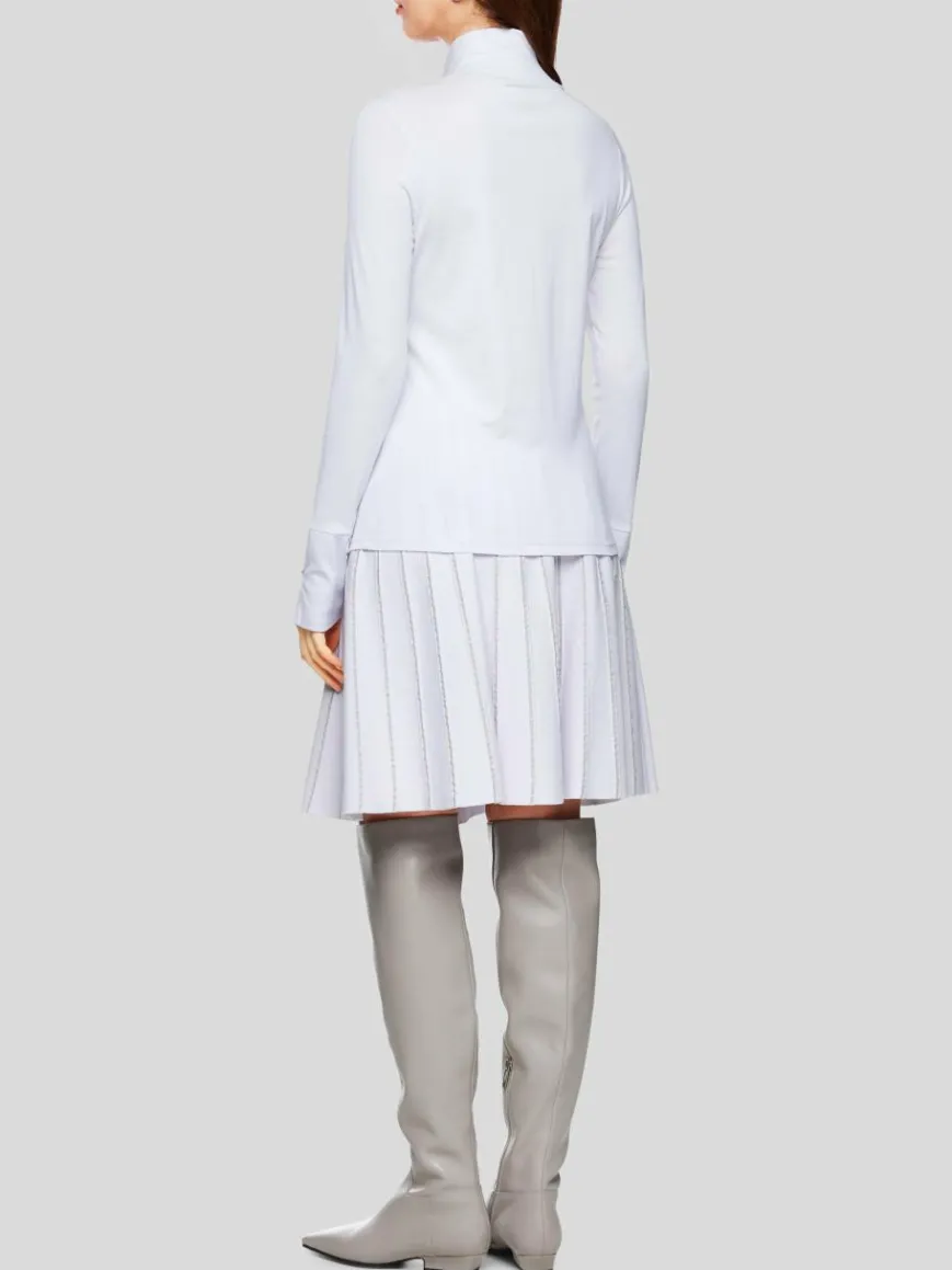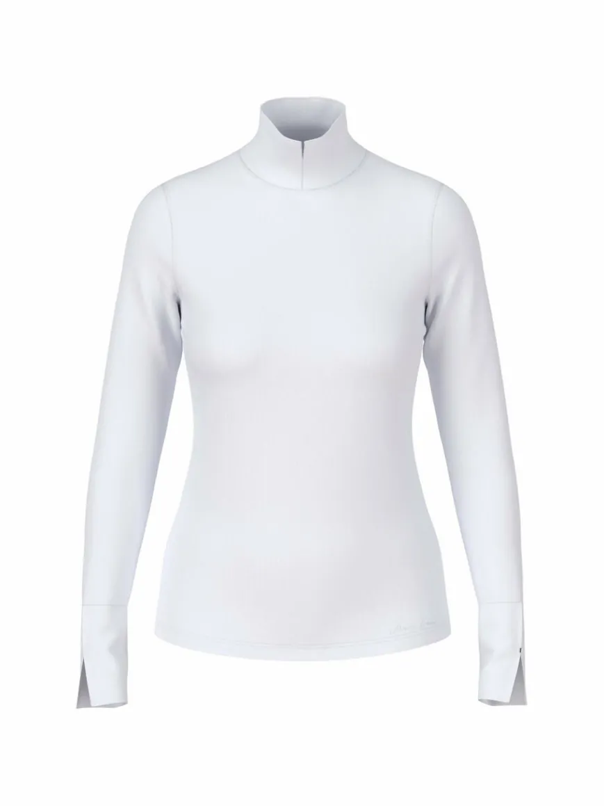 Softes T-Shirt aus Baumwolle mit Elastan. Dieses T-Shirt ist das ideale Basic für kühlere Tage. Es kommt mit Rollkragen und langem Arm. Blickfang ist der schmückende Knopf am geschlitzten Ärmelbund. Die taillierte Silhouette betont die Figur.