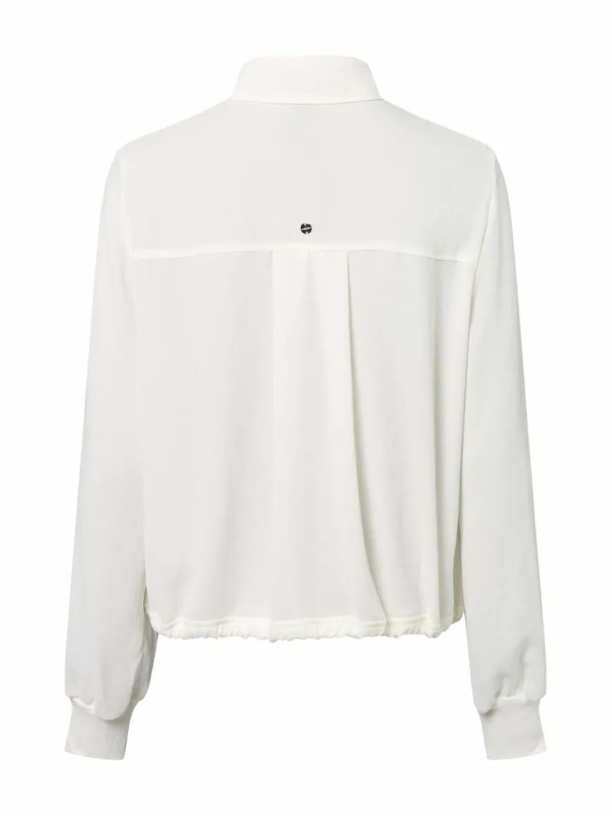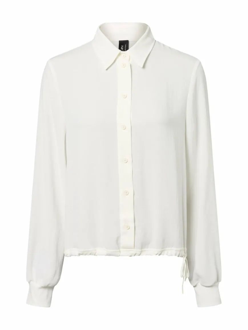Der Boxy Fit mit Rippbündchen und weitenregulierbarem Tunnelzug im Saum verleiht der sonst klassischen Hemdbluse von Marc Cain Collections ein lässiges Upgrade.