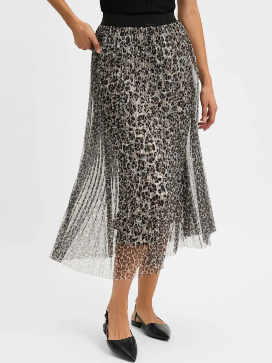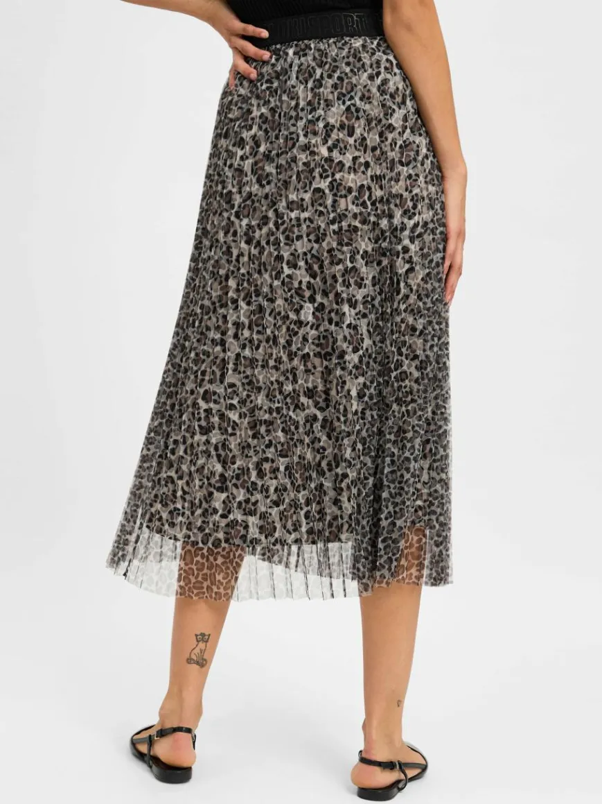 Verleiht dem Look ein cooles Finish: der Plisseerock von Marc Cain Sports aus Mesh und bedruckten Satin.