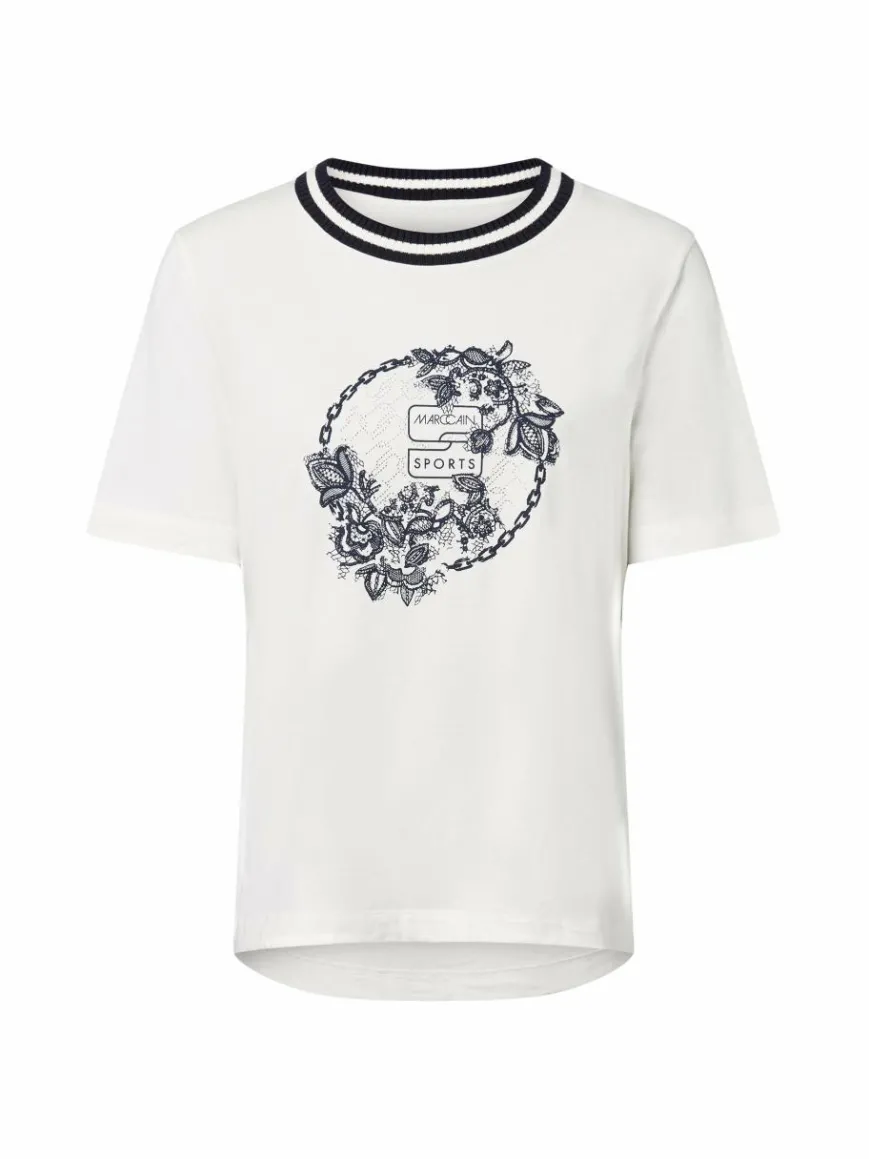 Das ultraweiche und mit funkelnden Schmucksteinen verzierte Jerseyshirt von Marc Cain Sports hinterlässt ein herrliches Tragegefühl und sorgt gleichzeitig für subtilen Glamour im Look.