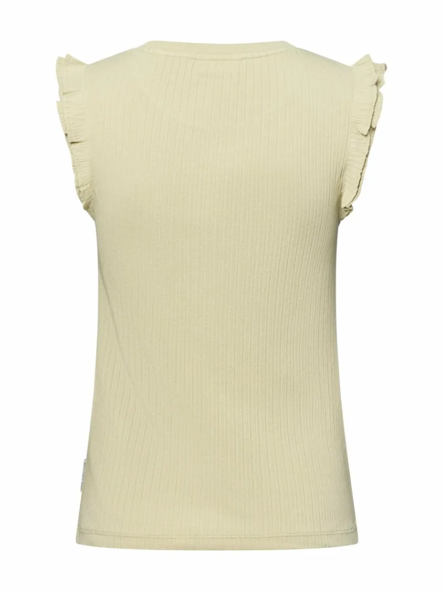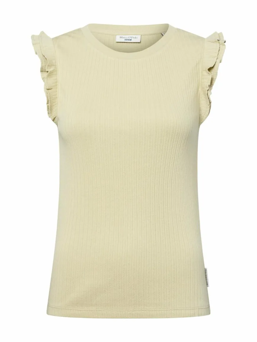 Die Rüschenblenden an den Armlochnähten und die strukturierte, weiche Jersey-Qualität machen das Top von Marc O’Polo Denim comfy und cute zugleich.