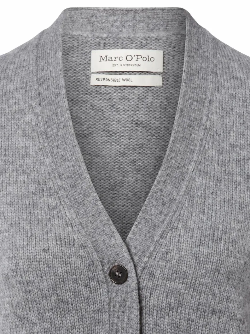 Zur klassischen Bluse gestylt, über einem Ringelshirt oder solo getragen: Die Marc O’Polo Strickweste aus weichem Schurwoll-Mix zeigt sich von ihrer wandlungsfähigen Seite.