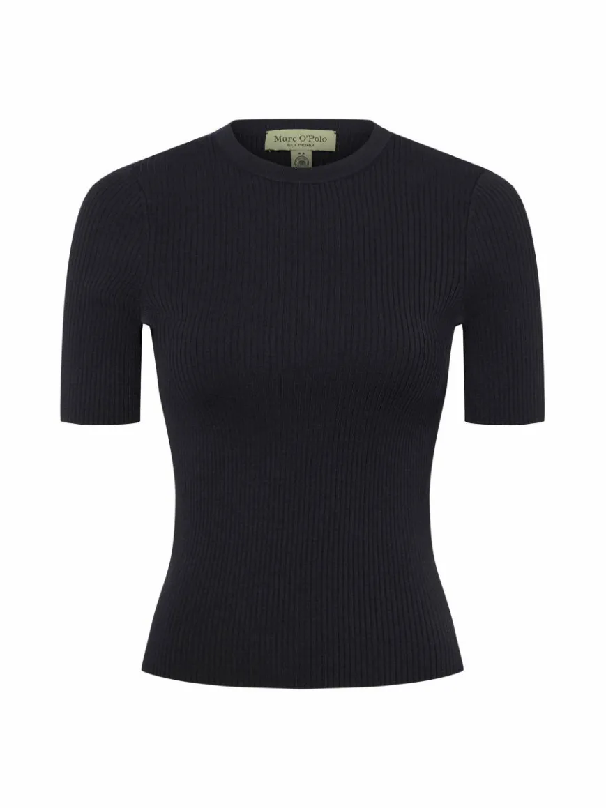 Unkomplizierter Allrounder: Das Marc O’Polo Strick-Shirt begeistert aus feinstem Viskose-Mix in Rippjersey-Qualität und mit einem puristischen Look.