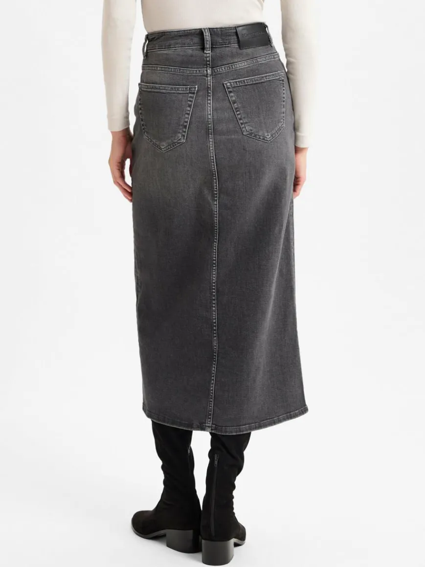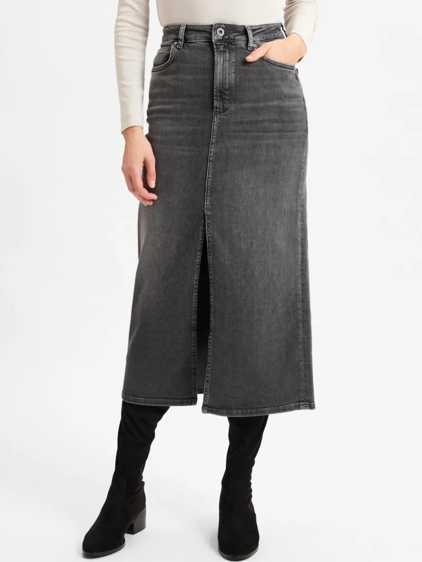 Der Marc O’Polo Midi-Jeansrock im 5-Pocket-Stil vereint lässigen Charme mit einer femininer Silhouette und eignet sich hervorragend für vielseitige Outfits.