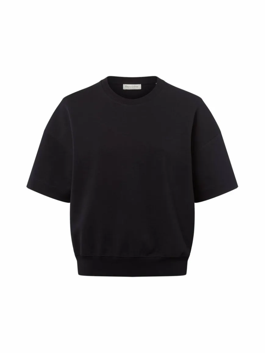Ein modernes Basic: Der Sweater von Marc O’Polo setzt mit der O-Shape und den halblangen Ärmeln optisch auf Gelassenheit.