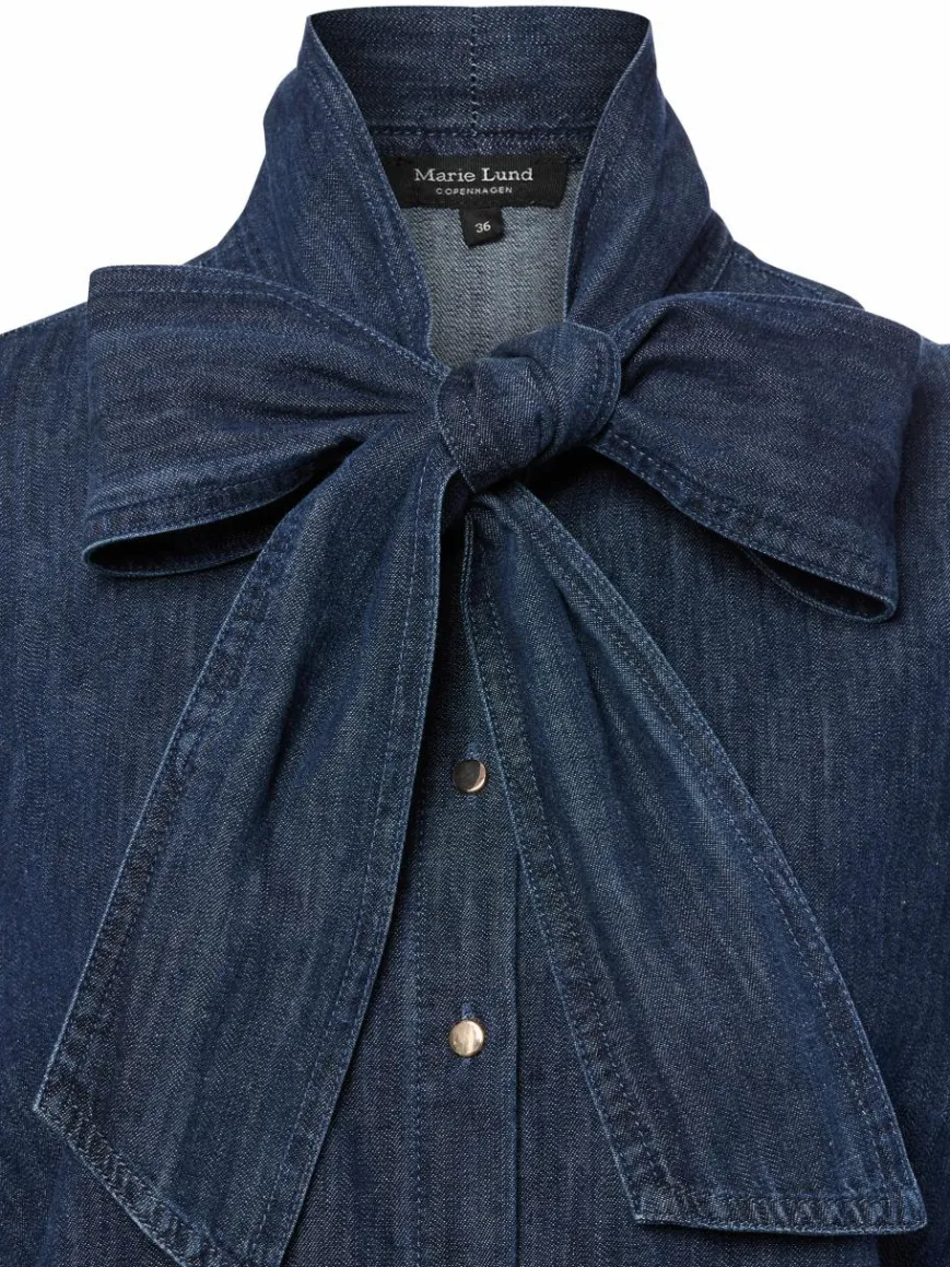 Die Bluse von Marie Lund besticht durch raffinierte Details wie gepuffte Ärmel mit Manschettenknöpfen und ein verspieltes Bindedetail am Kragen – im Denim-Look aus Baumwolle.