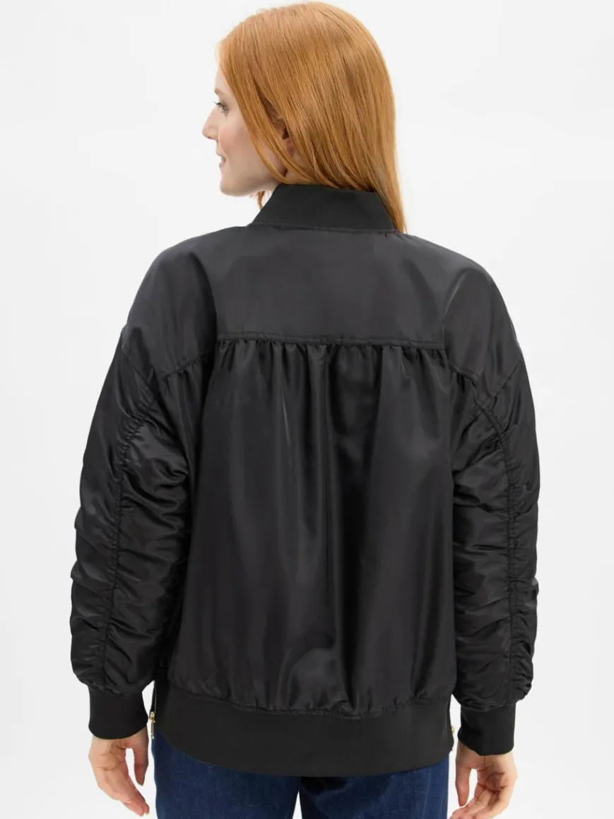 Der Marie Lund Blouson setzt mit der oversized Passform, dem changierenden Look und glanzvoller Hardware auf stilvolle Lässigkeit im herbstlichen Styling.