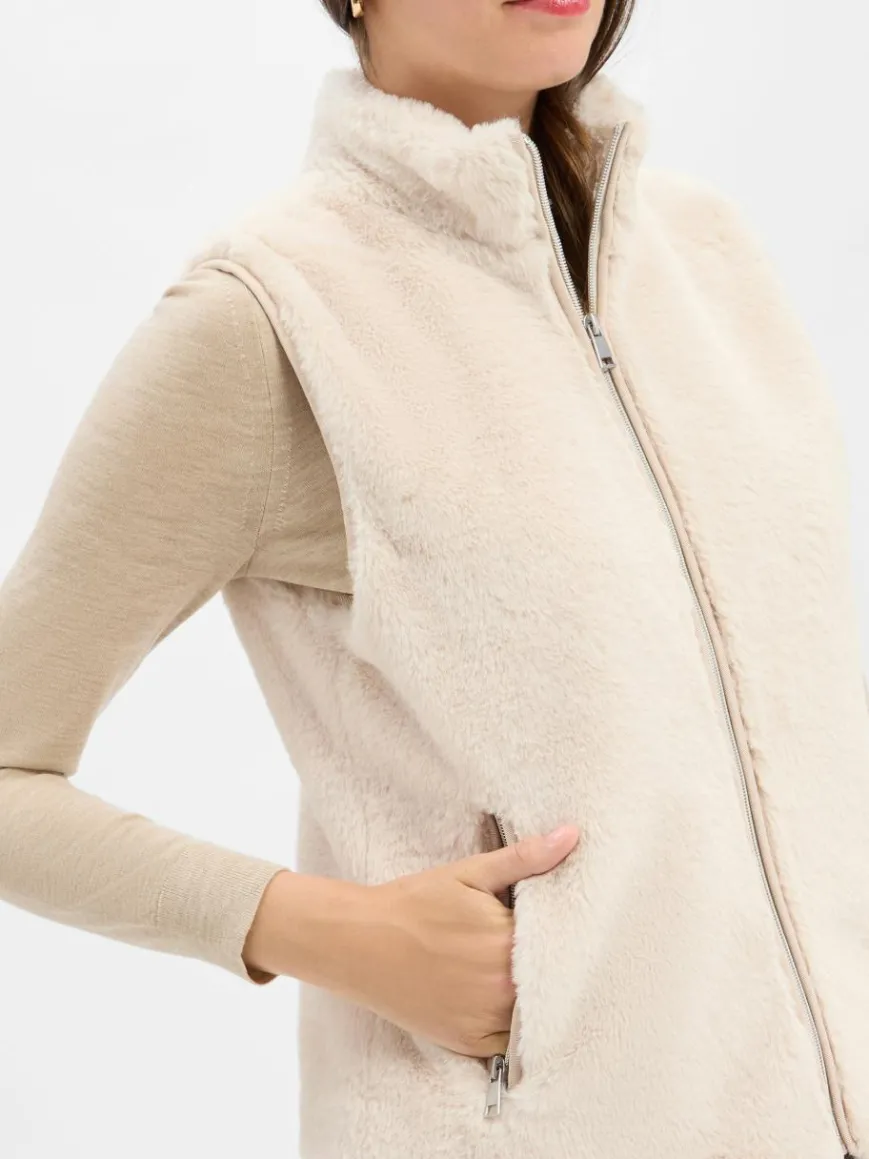 Gibt jedem Look eine trendige Note und ist perfekt für die Übergangszeit: die Marie Lund Weste aus kuscheligem Kunstfell mit praktischem Stehkragen.