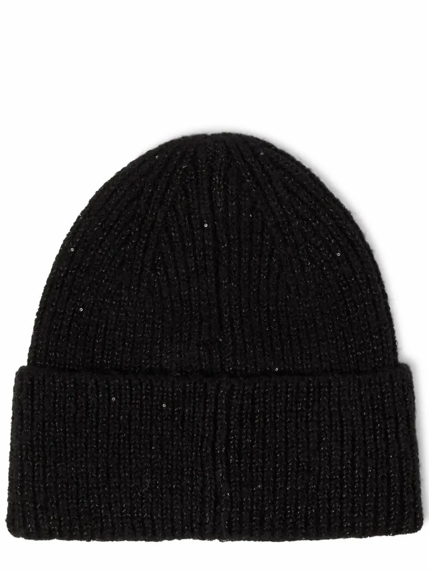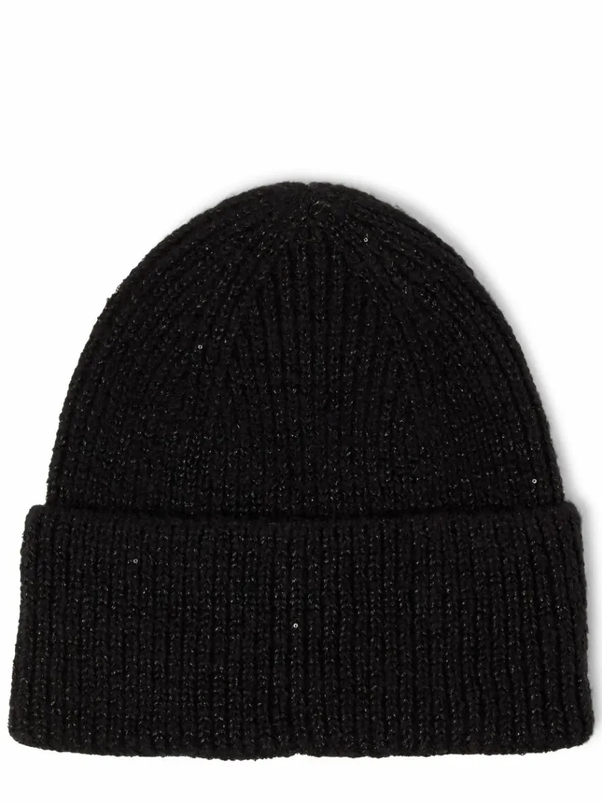 Filigrane Pailletten und Glanzfäden zieren die Marie Lund Mütze und bilden einen schönen Kontrast zur groben Strick-Qualität.