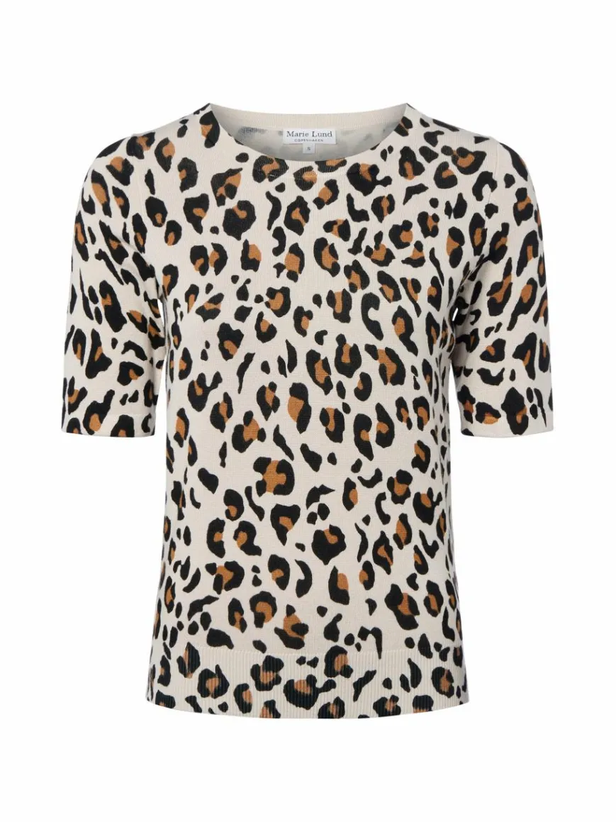 Unter einem Blazer oder solo getragen, der Marie Lund Pullover überzeugt mit einer Kombi aus halblangen Ärmeln, raffiniertem Leo-Design und Feinstrick-Qualität.