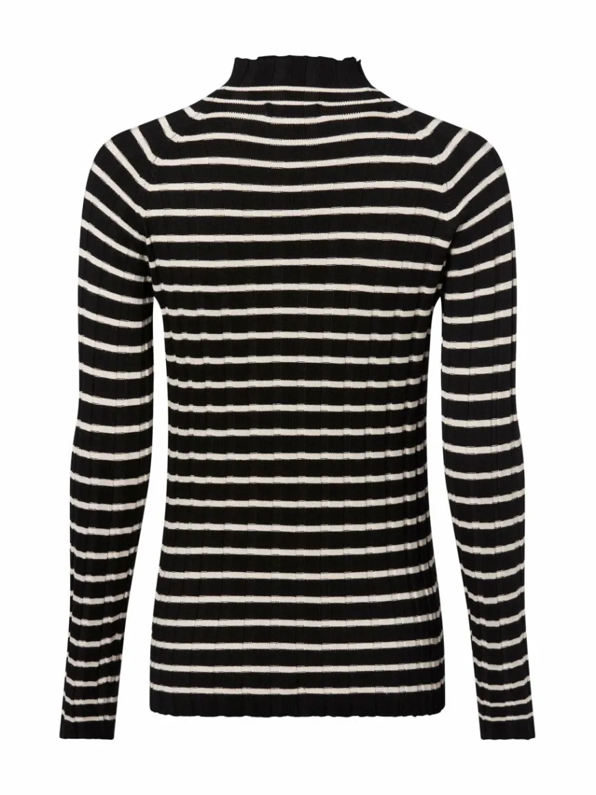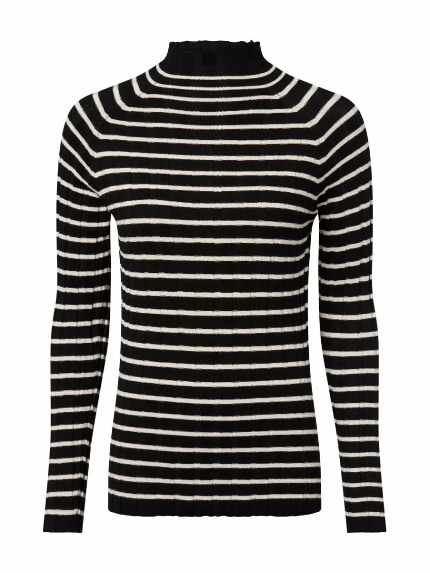 Der Feinstrick-Pullover aus weichem Vikose-Mix von Marie Lund mit Rippstrick und Stehkragen verbindet zeitlose Eleganz mit gemütlichem Komfort.