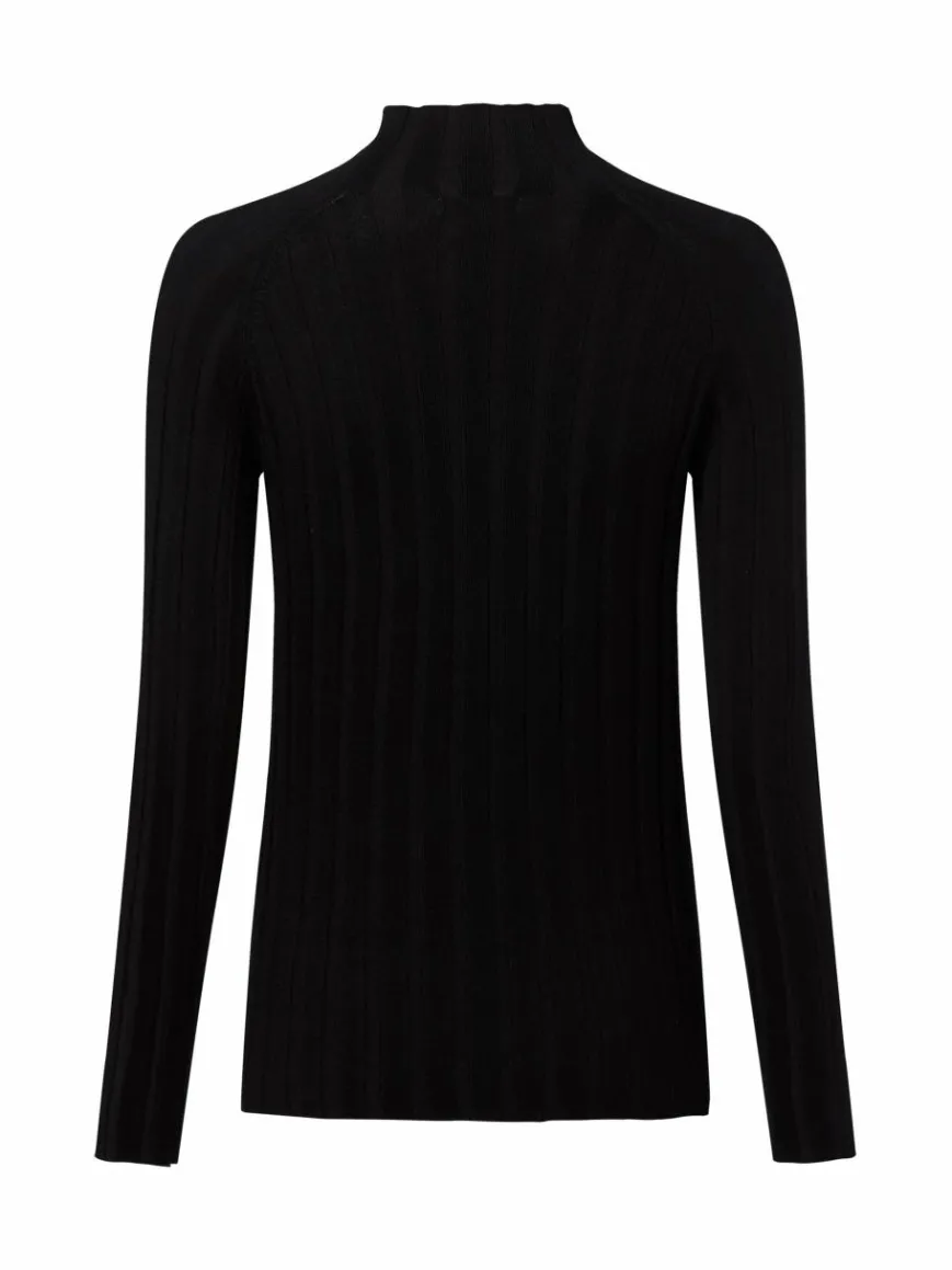 Der Rippstrickpullover von Marie Lund mit Stehkragen und Raglanärmeln schmiegt sich dank der schmalen Passform und der Viskose-Mix-Qualität angenehm an den Körper.